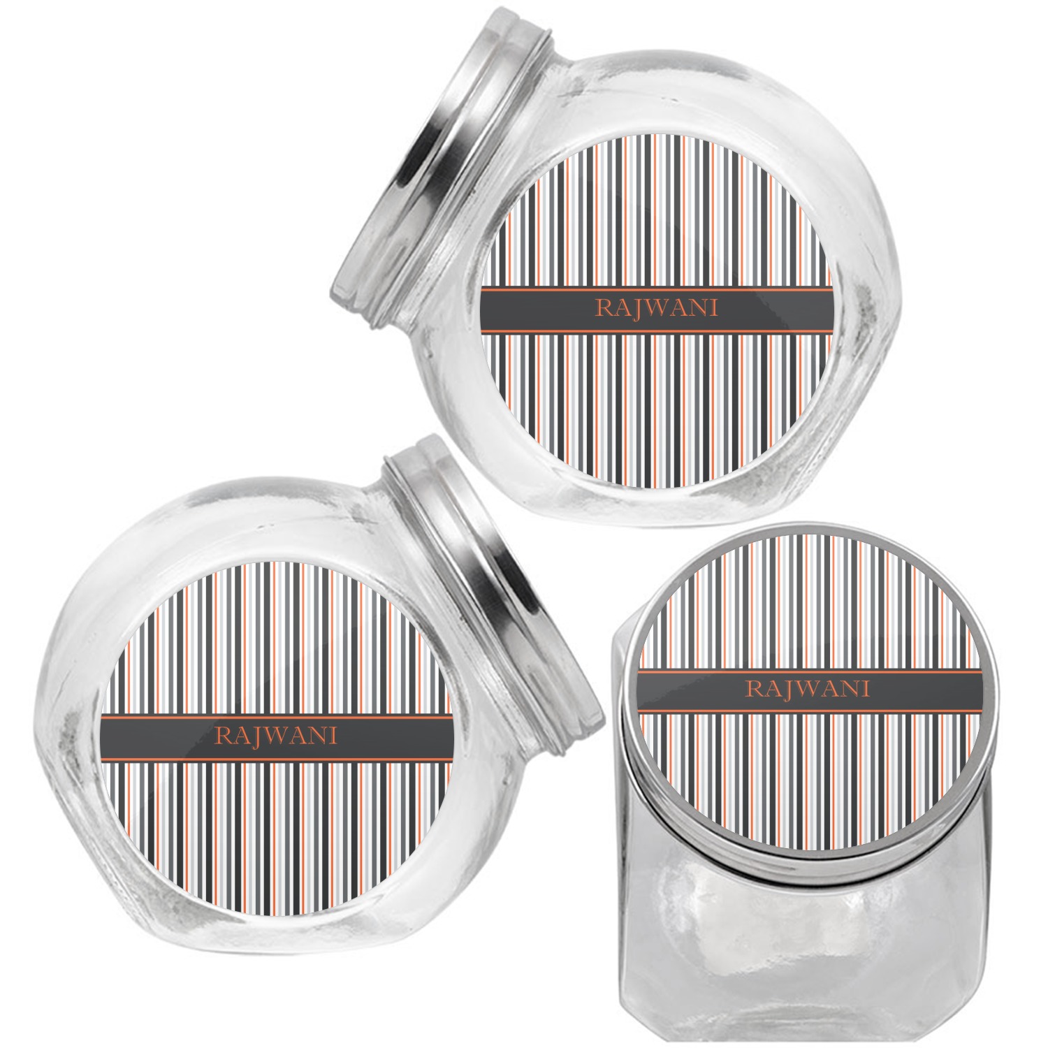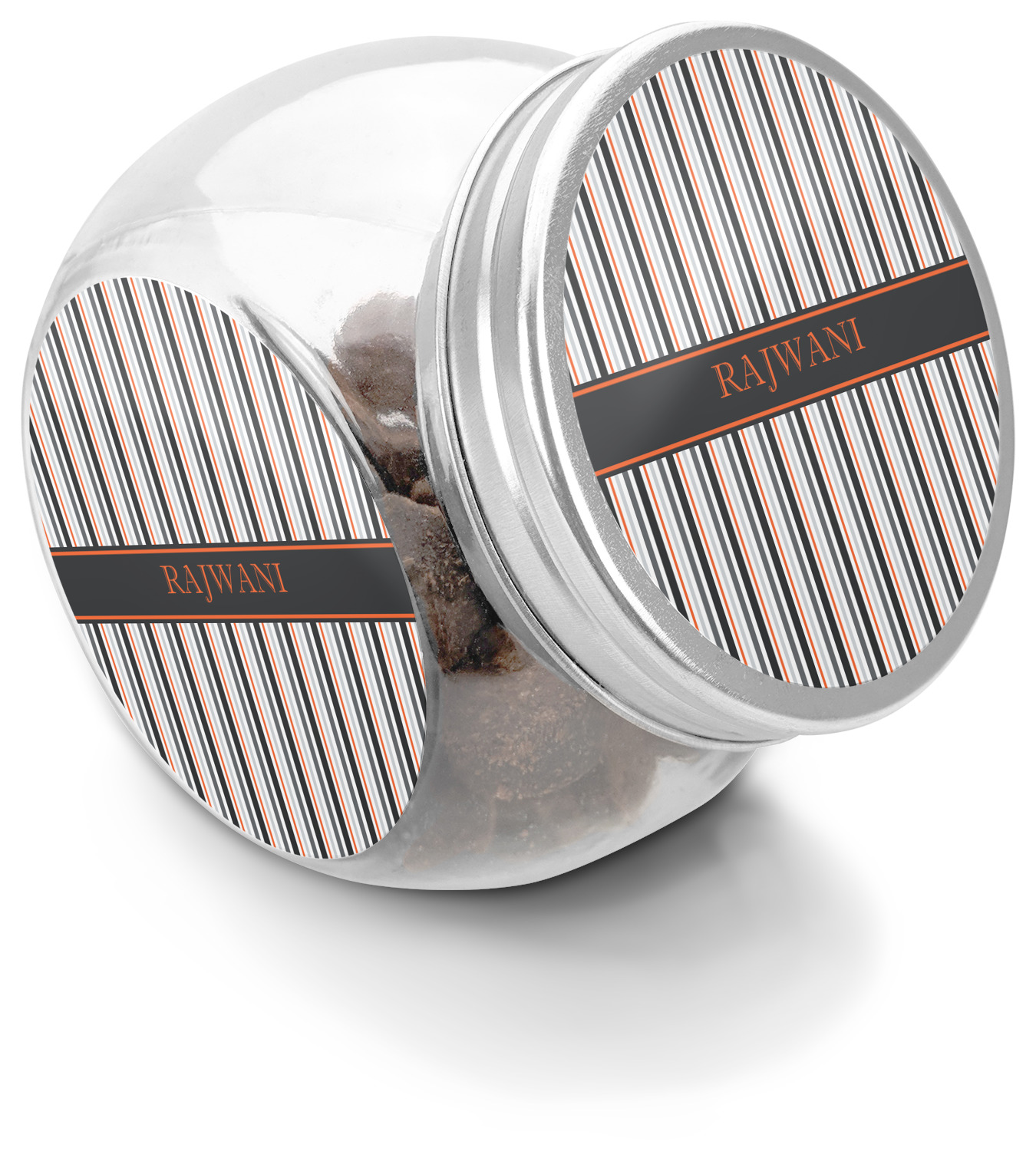This treat jar is an excellent way to store treats for your favorite canine or feline. Moreover, their delicate, classy appearance makes them a tasteful addition to your countertop's décor. Crafted from clear glass, its unique construction and silver metal, screw-on lid allows for quick and easy access. Three, permanent, vinyl stickers are applied to both sides of the jar and lid, presenting your personalized design. The base of this glass, dog treat jar is 3.4" x 4.75", and the jar stands at 5" tall. Though on the smaller side, this jar is best suited for smaller treats or training treats.