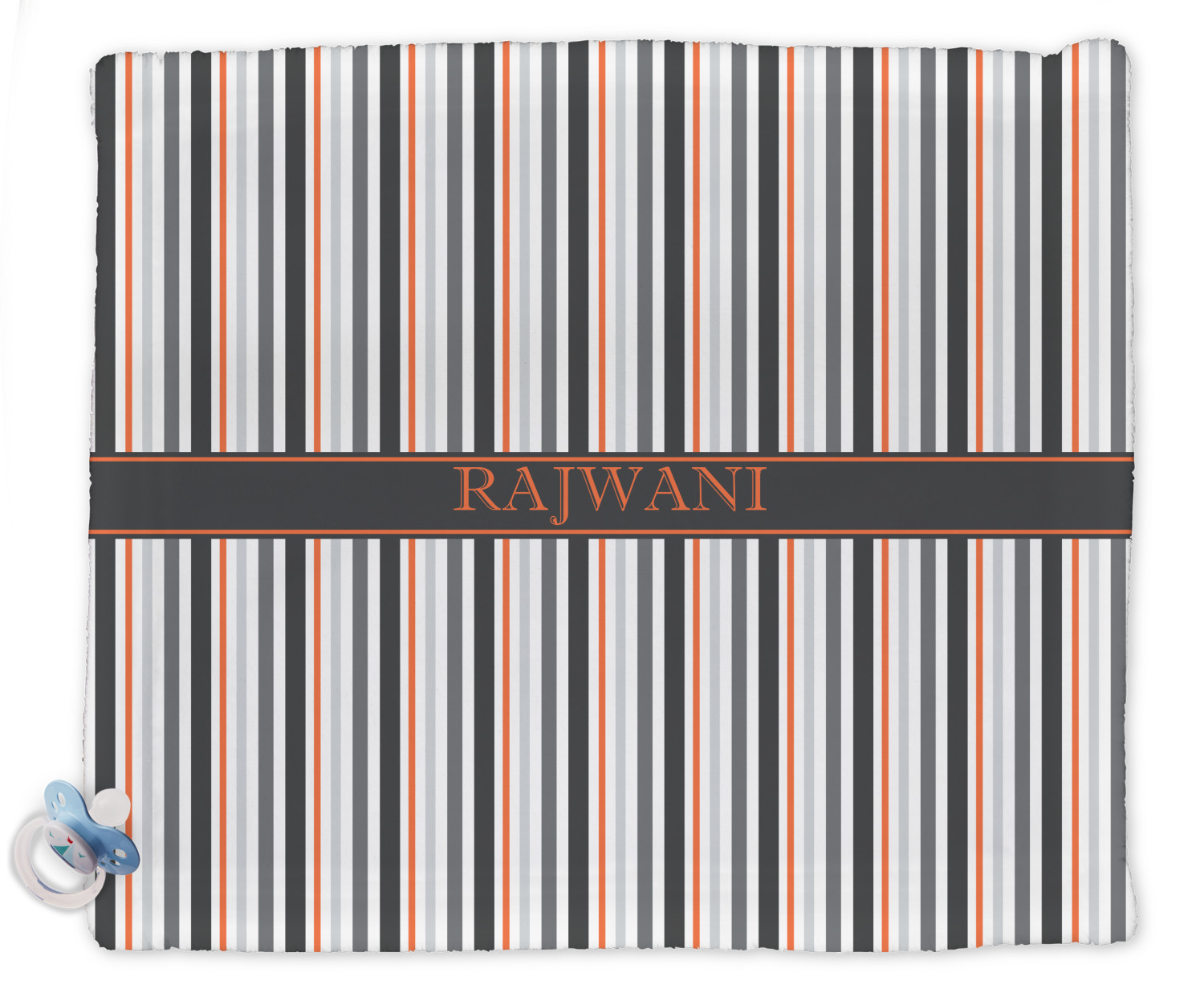 A wide band of black with a orange trim pulls the design together. This band adds a modern touch and provides the focal point for personalization of your choice.