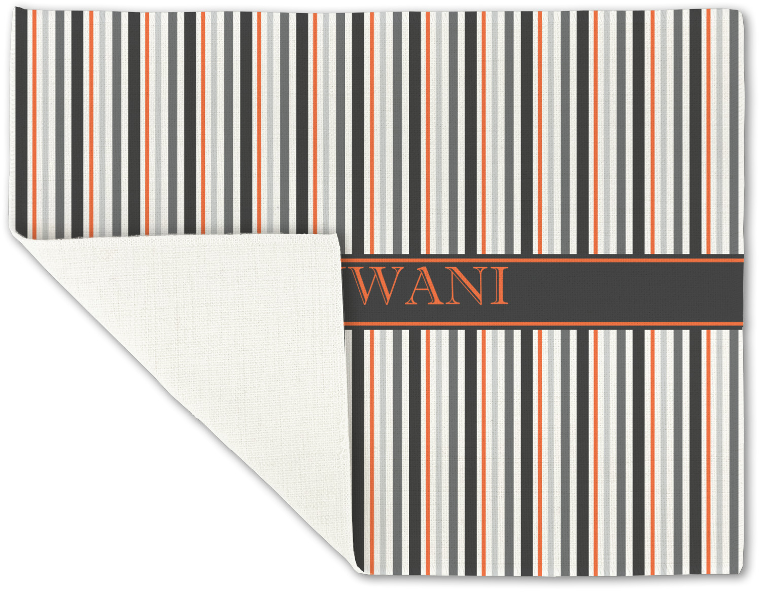A wide band of black with a orange trim pulls the design together. This band adds a modern touch and provides the focal point for personalization of your choice.