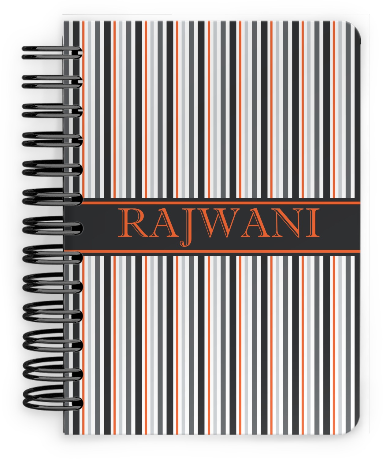This spiral notebook includes 75 sheets of thick, ruled paper. The front and back of this custom notebook is made of a robust, laminate, plastic covering. We print your personalization on these two panels, underneath a glossy finish, which emphasizes the colors of your design. The two panels and the sheets of paper are held together by a sturdy, black coil. The paper within your bound notebook is perforated for easy, clean tearing.