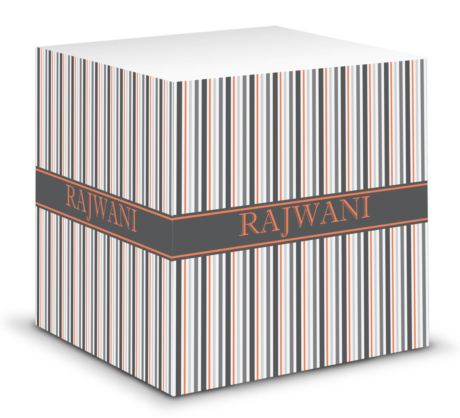 This note cube features 700 sheets of matte, white paper. Each sheet measures at 3.5 by 3.5 inches and has an adhesive strip at its top. Your personalized design is displayed on all four edges of the sticky pad.