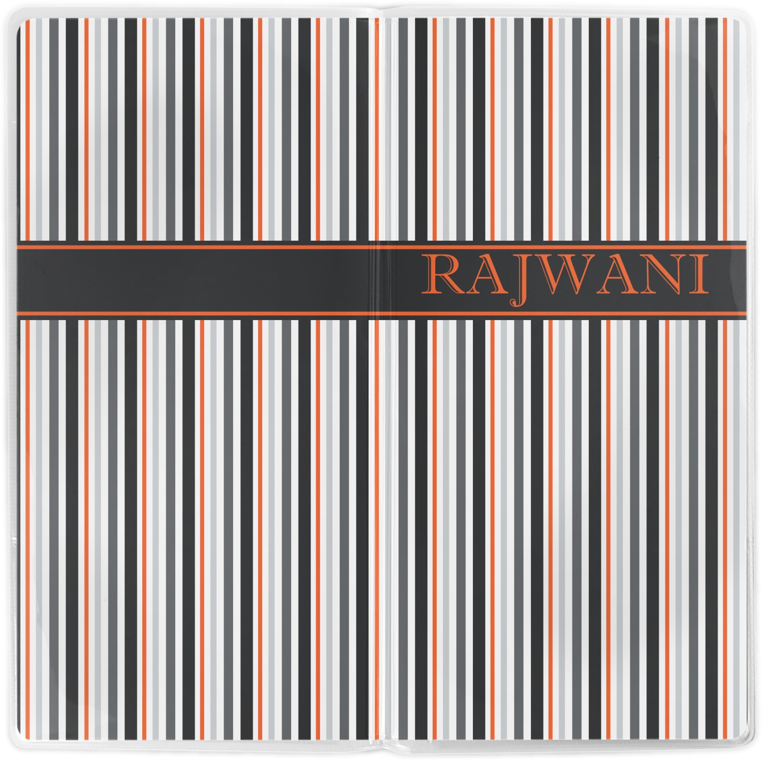A wide band of black with a orange trim pulls the design together. This band adds a modern touch and provides the focal point for personalization of your choice.