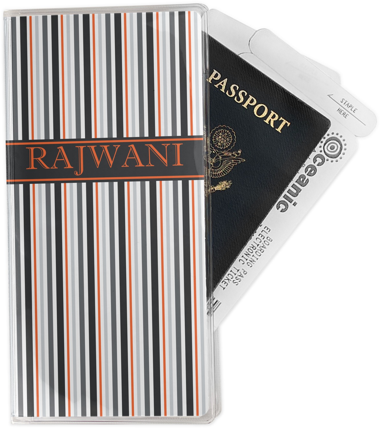 This document holder is really sturdy and has your personalized design inserted right behind all of your nifty pockets, so you can see it on the front and back covers. There are two large pockets and two shorter pockets inside. The larger pockets are tall enough to keep your boarding pass nice and straight. The smaller pockets (on top of the large pockets) are large enough to fit your passport, credit card, or ID.