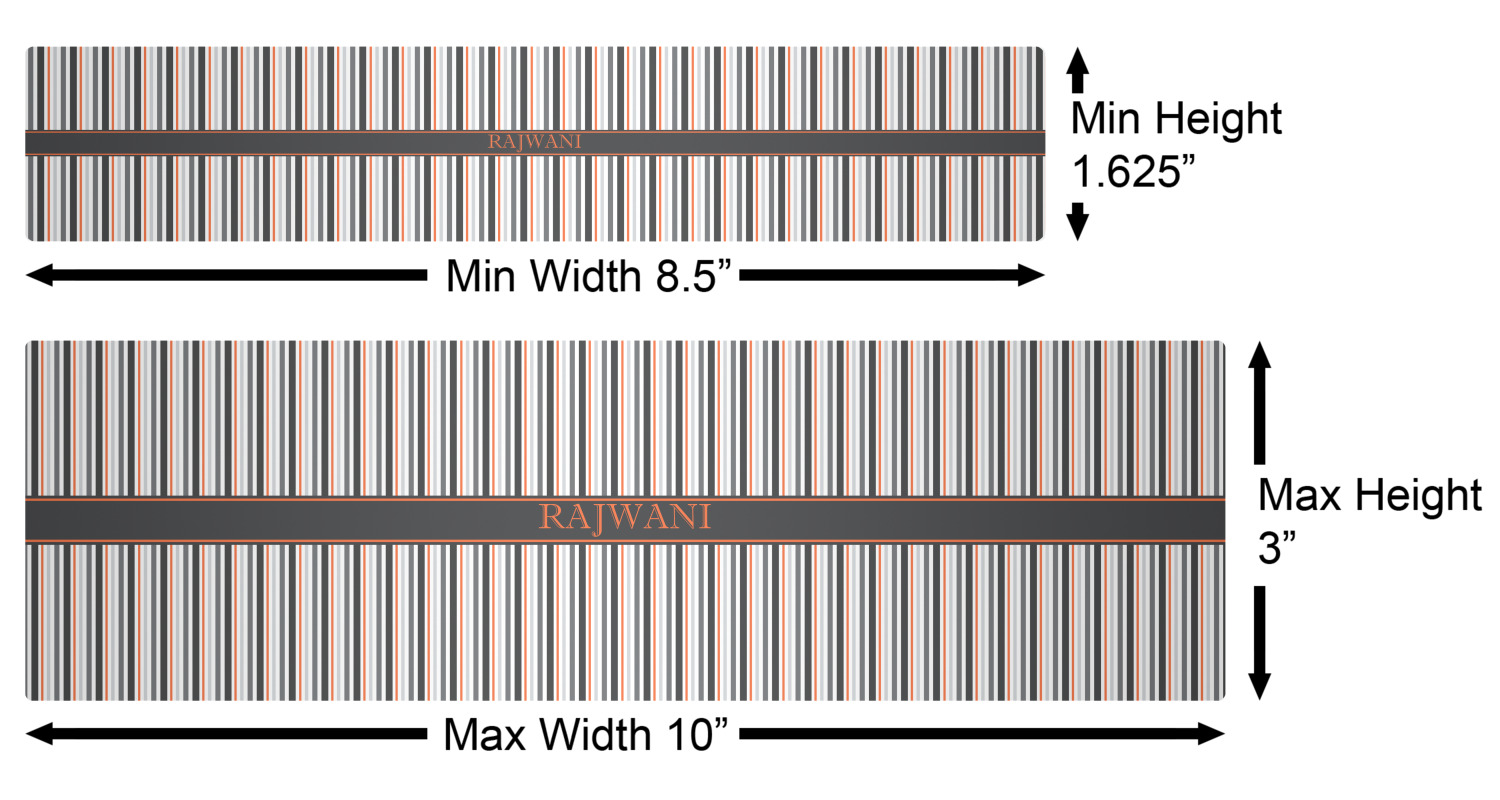 A wide band of black with a orange trim pulls the design together. This band adds a modern touch and provides the focal point for personalization of your choice.