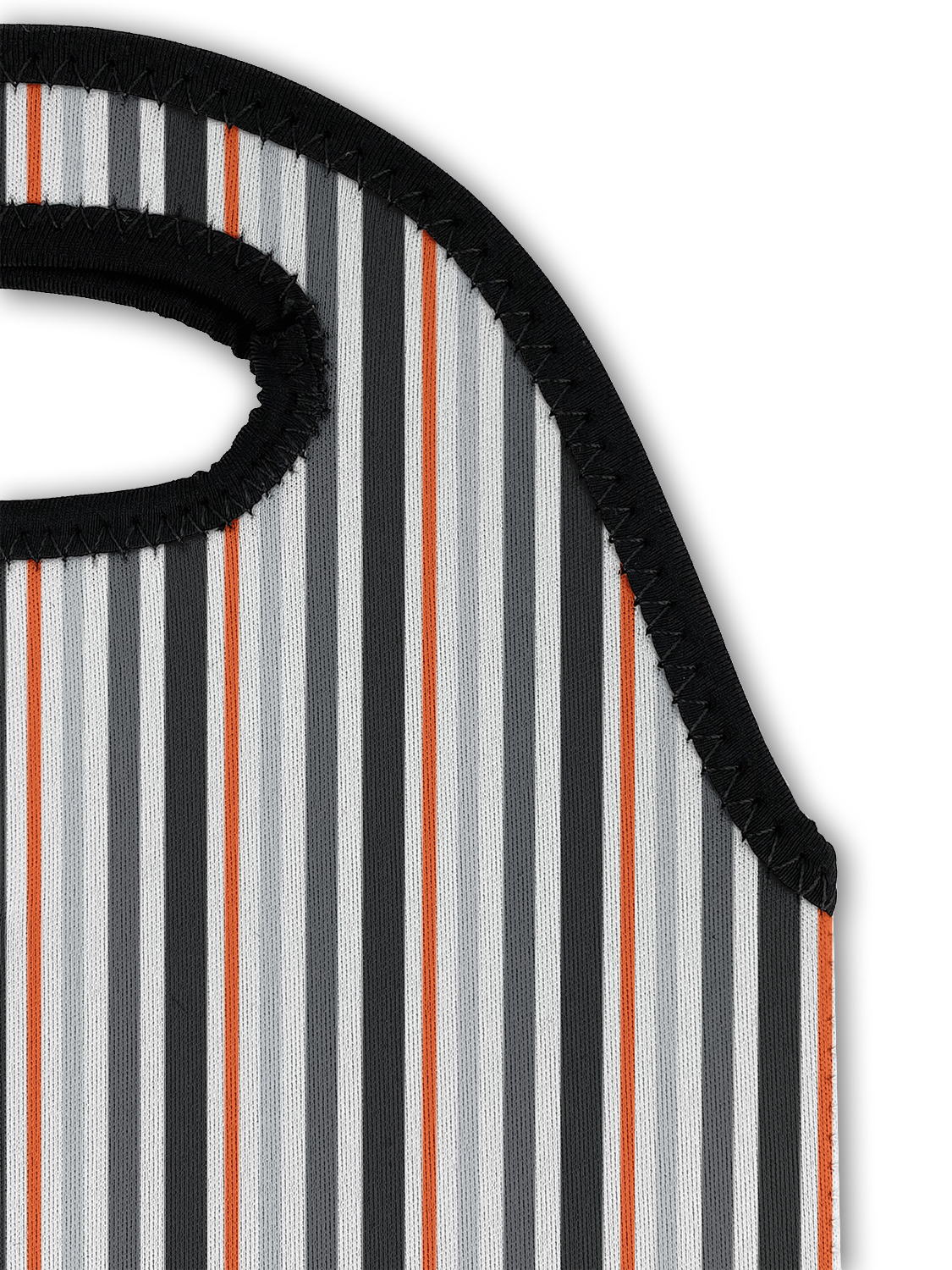 Stripes are timeless and so versatile to design around. Stripes go with everything! We have taken this pattern to another level with our use of varying shades of gray, black, and a pop of orange. This color scheme is to die for and so easy to decorate with.