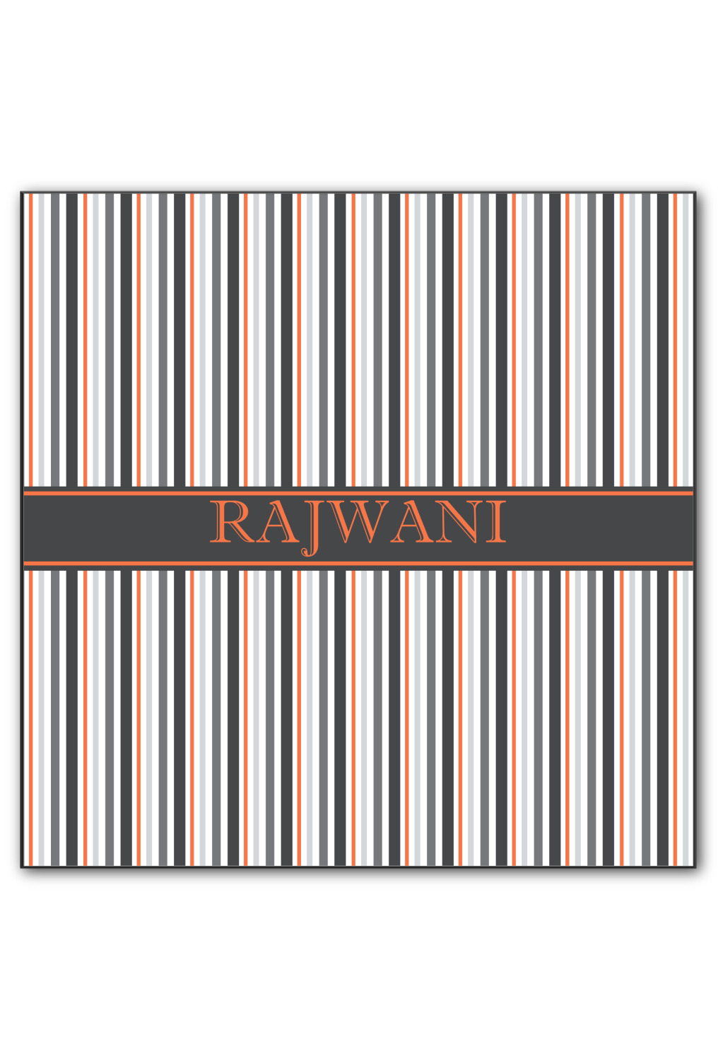 A wide band of black with a orange trim pulls the design together. This band adds a modern touch and provides the focal point for personalization of your choice.