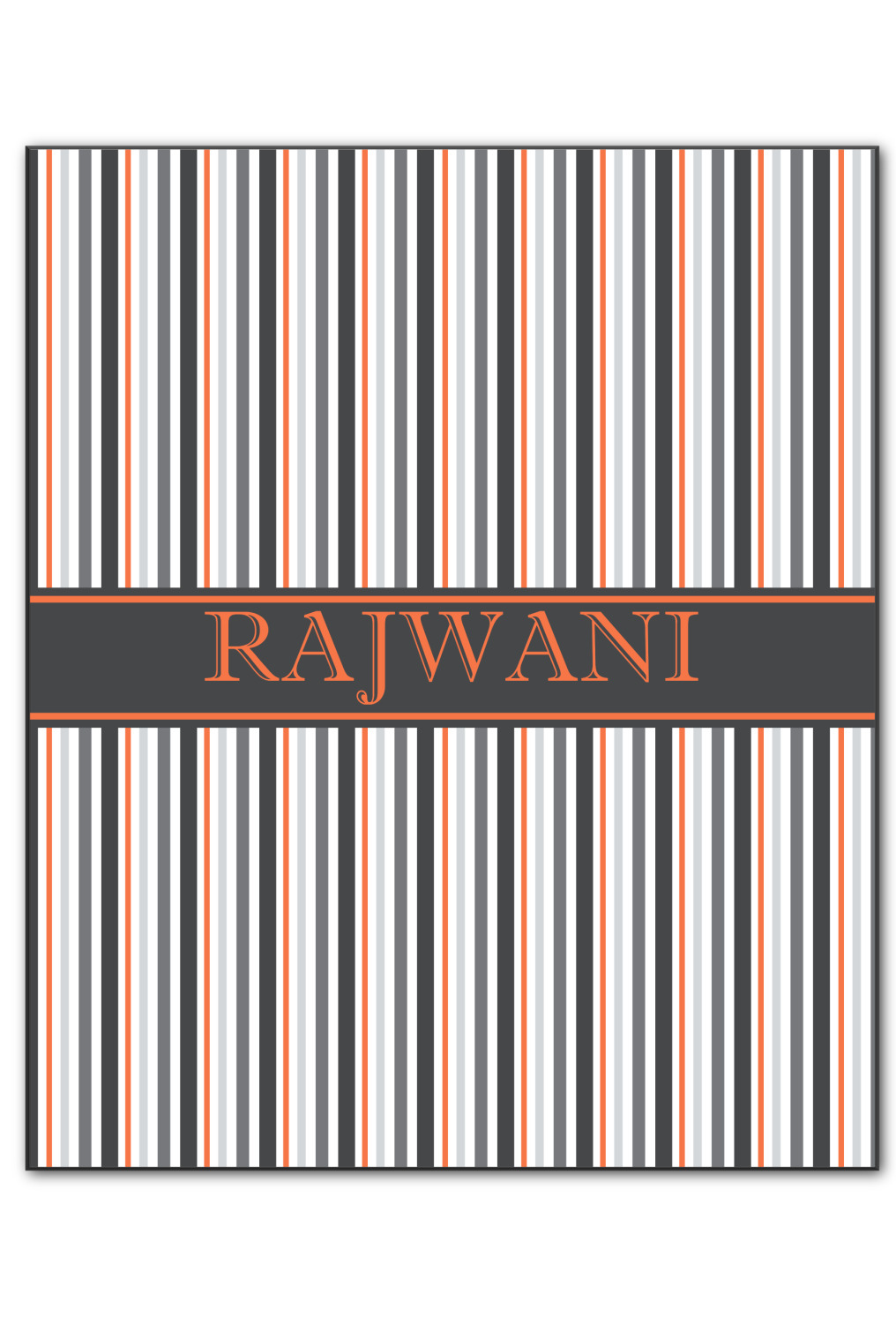 A wide band of black with a orange trim pulls the design together. This band adds a modern touch and provides the focal point for personalization of your choice.