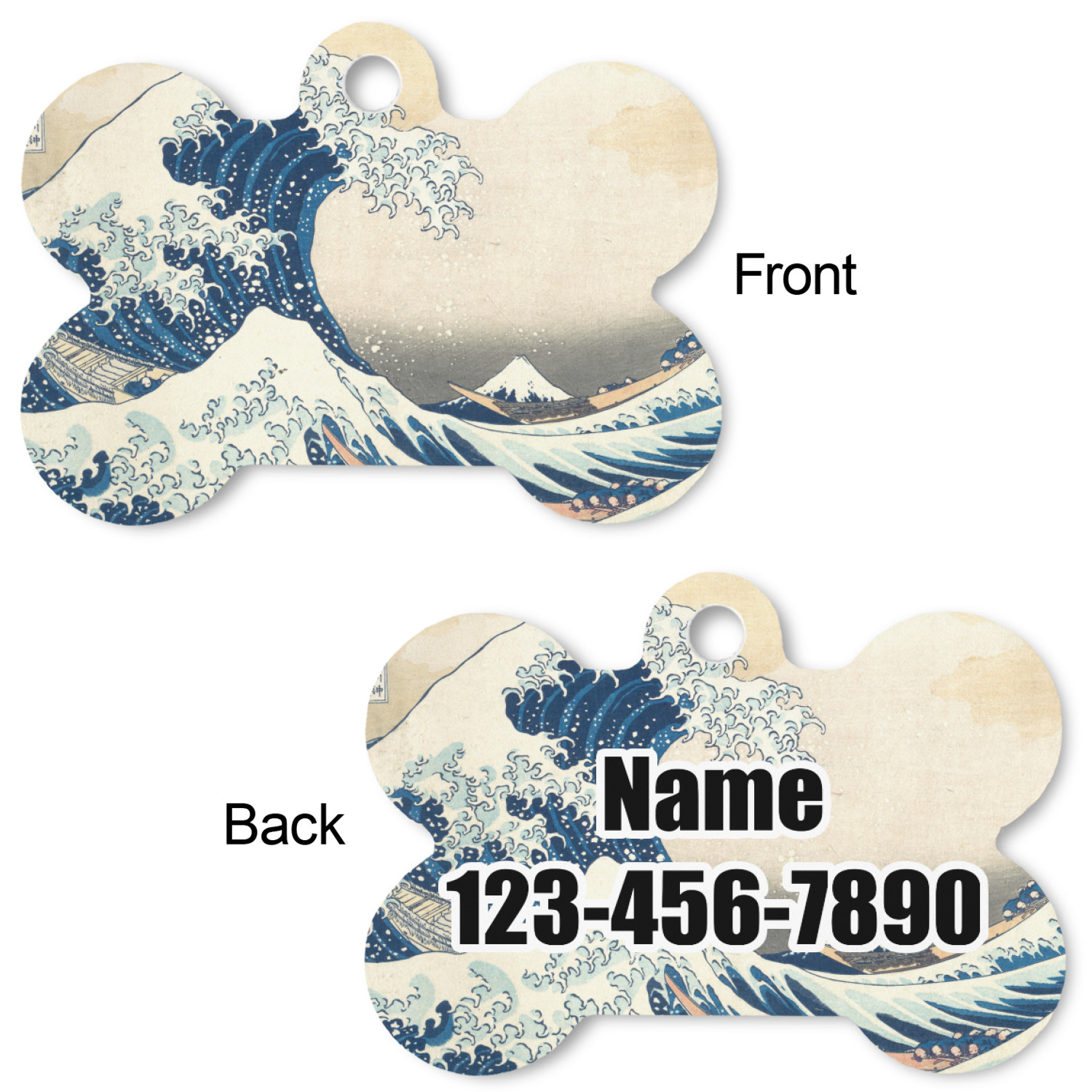 Our default design templates print your dog's personalization on the front and your contact information on the back; however everything is customizable, so you customize the patterns, the colors, the personalization, the contact information etc.