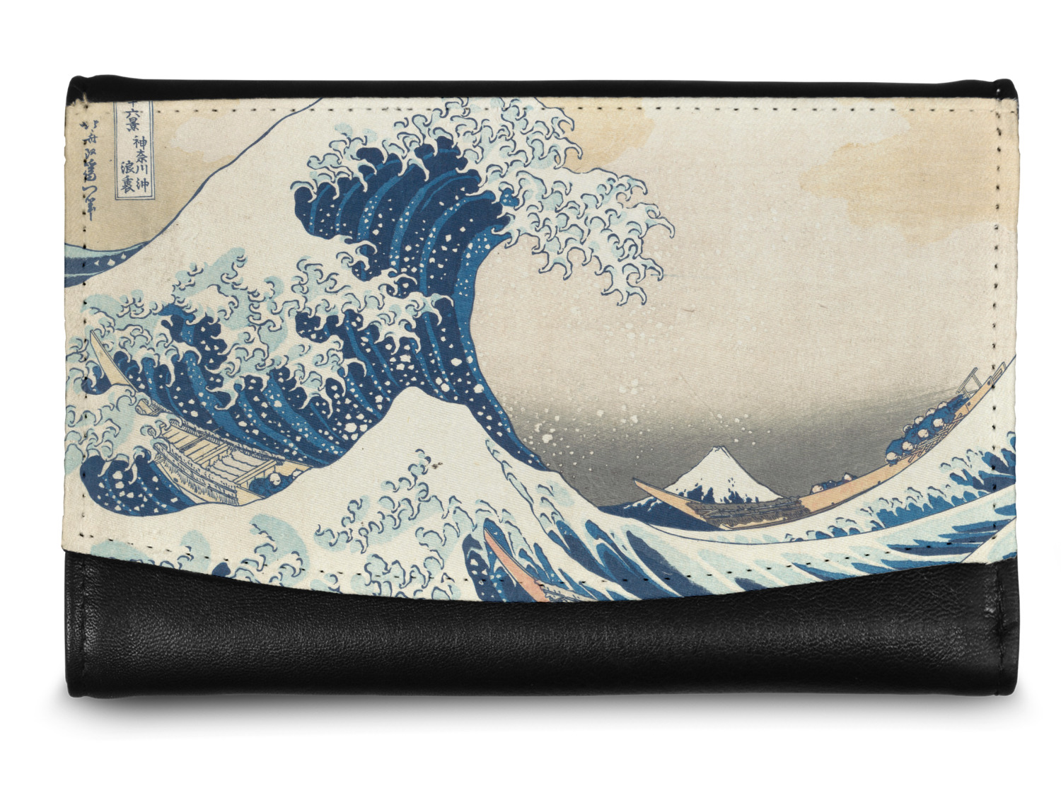 The compact size of this wallet - 5.5in wide, 3.5in tall and 0.75in thick when folded - makes it perfect to hold in hand and small enough to fit in a clutch or a normal size purse. The outside flap is customized with your choice of artwork and closes with a snap closure - with two different snaps to allow it to be adjusted when storing more items - to securely fasten the flap.