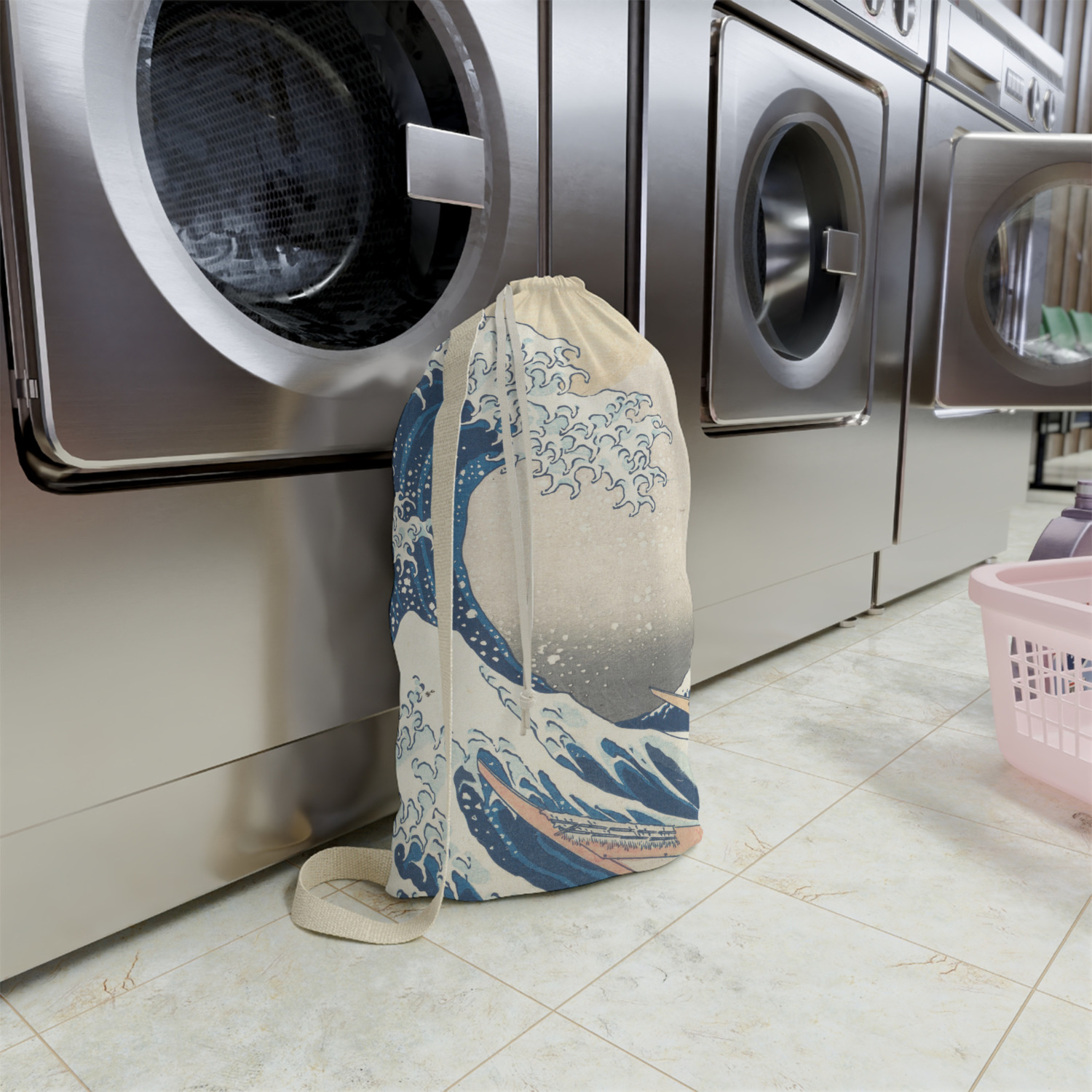Carry your laundry in style with these customized laundry bags. Available in two sizes, featuring a natural colored woven strap and a cinch cord, these bags hold a lot of clothes or anything else you want to fit in them.