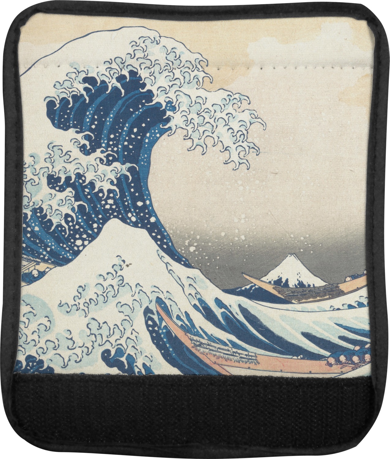 The luggage handle covers are made of neoprene with black trim and have Velcro closure to snugly fit around the handle. Your design is printed on the neoprene. The covers measure approx 5"x6".