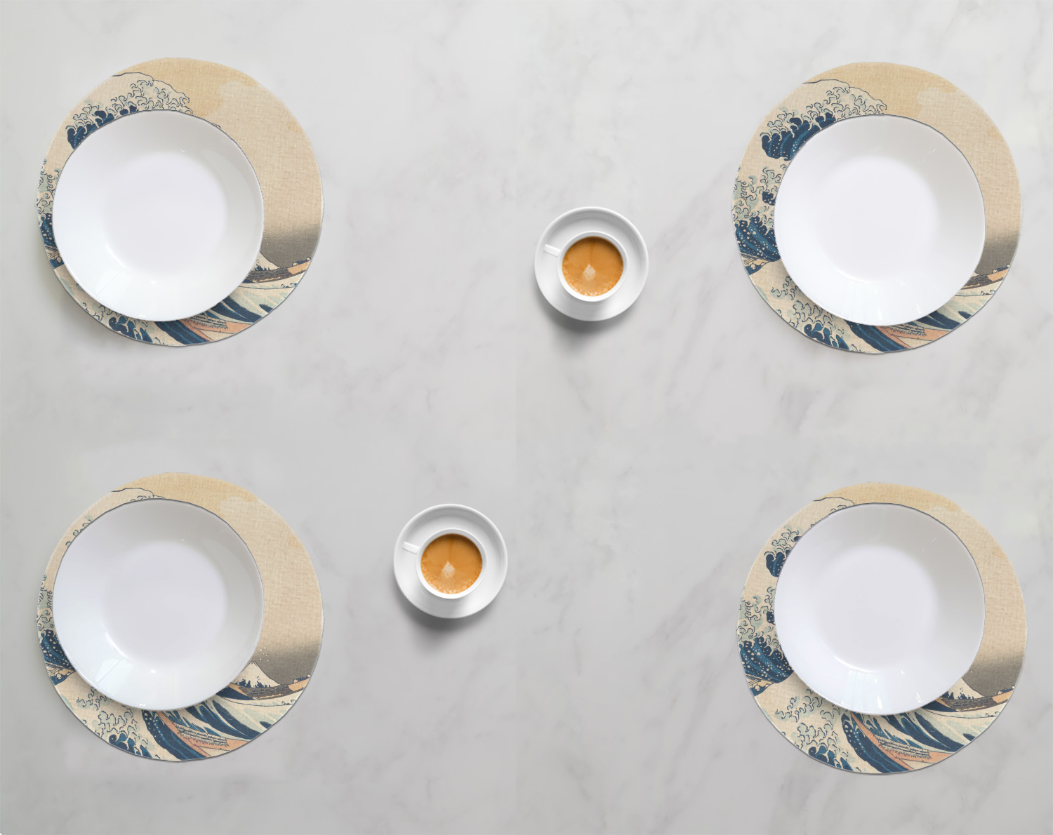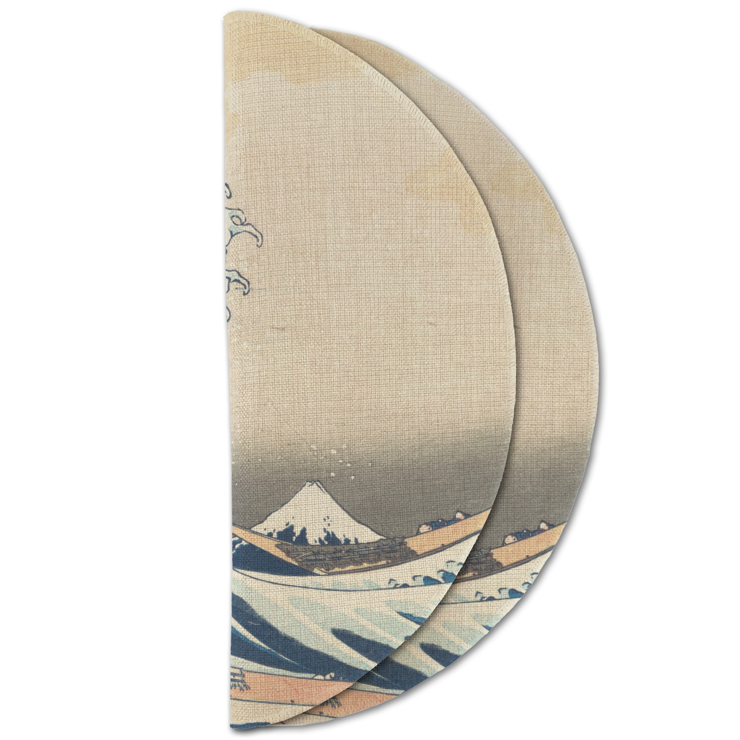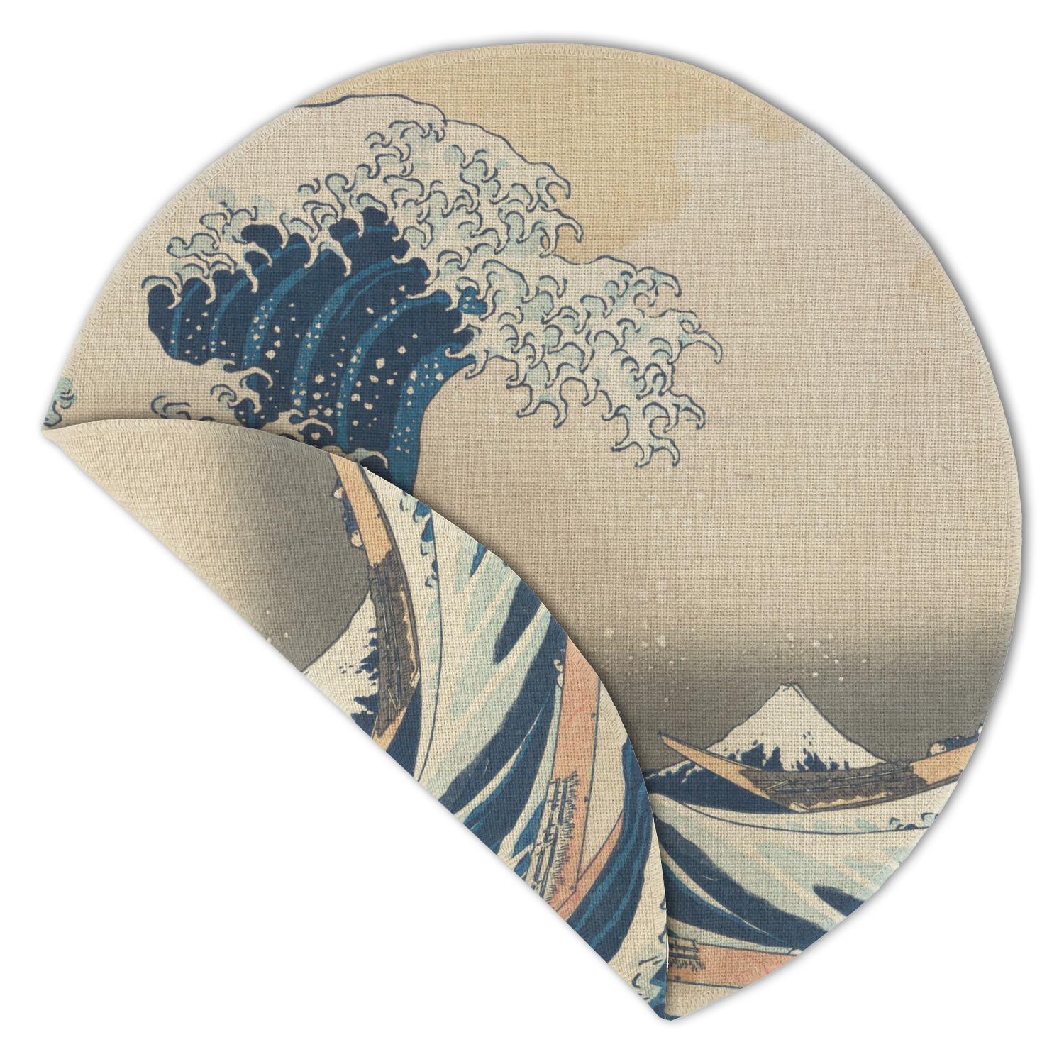Great Wave off Kanagawa Design Custom Round Linen Placemats - Double-Sided - Set of 4