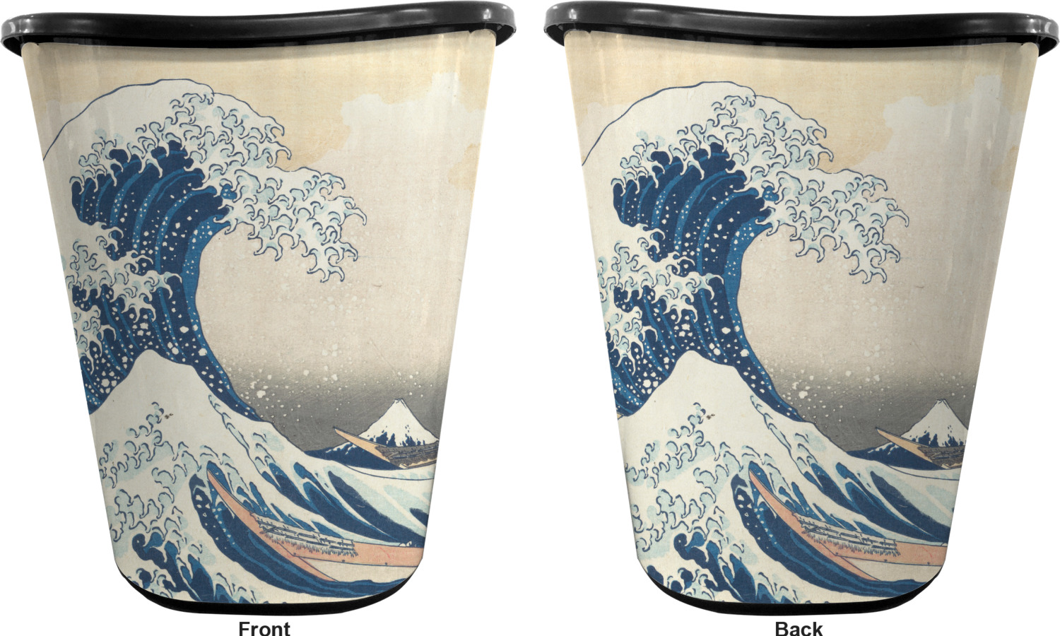 You can choose to purchase these decorative wastebaskets in either a white or a black color that will show on the base and the upper rim. Your customization is printed on a high-gloss, fine-quality vinyl adhesive, and you can choose to either have this adhesive applied to one side only or to both sides. As such, this plastic wastebasket can be single-sided or double-sided, depending on your creative vision. Your customization is printed using durable inks, making the design waterproof and resistant to fading over time.