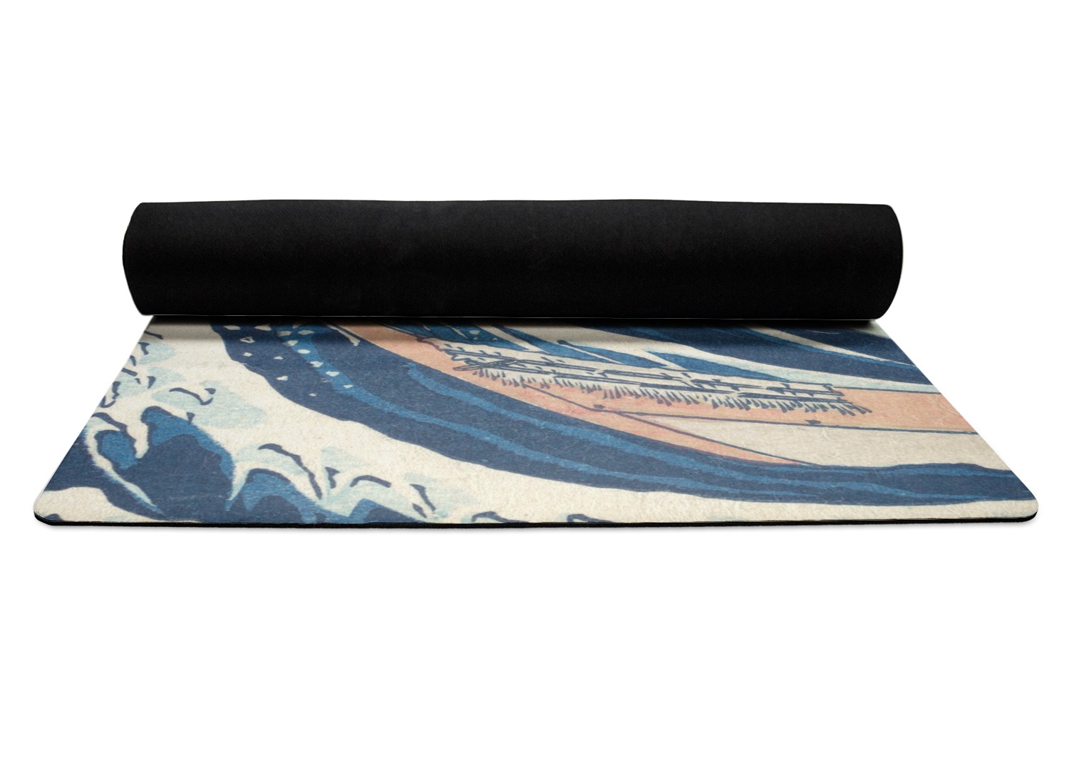 The top of the mats are dyed with your design using eco friendly non solvent inks. They have a smooth fleece felt top and feels very soft. The back of the mat is a sleek black and is a squishy non-slip texture to ensure that your mat does not slip on the floor. Our rubber backed mats are the perfect size at 68" x 24" and are just under approximately 1/4 inch thickness.
