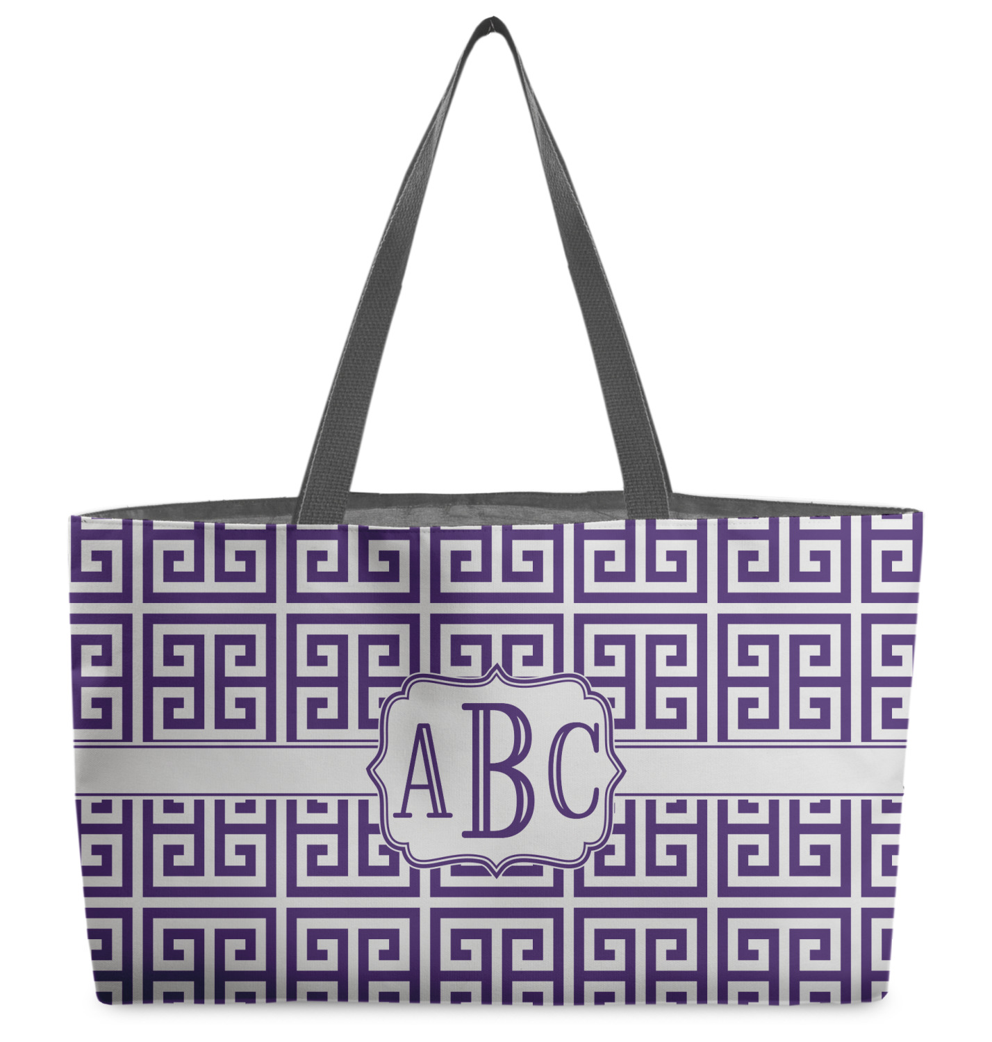 These beach totes are handmade here in the USA. Fabric is printed with your design. The tote is then sewn from the fabric pieces, lining and handles added.