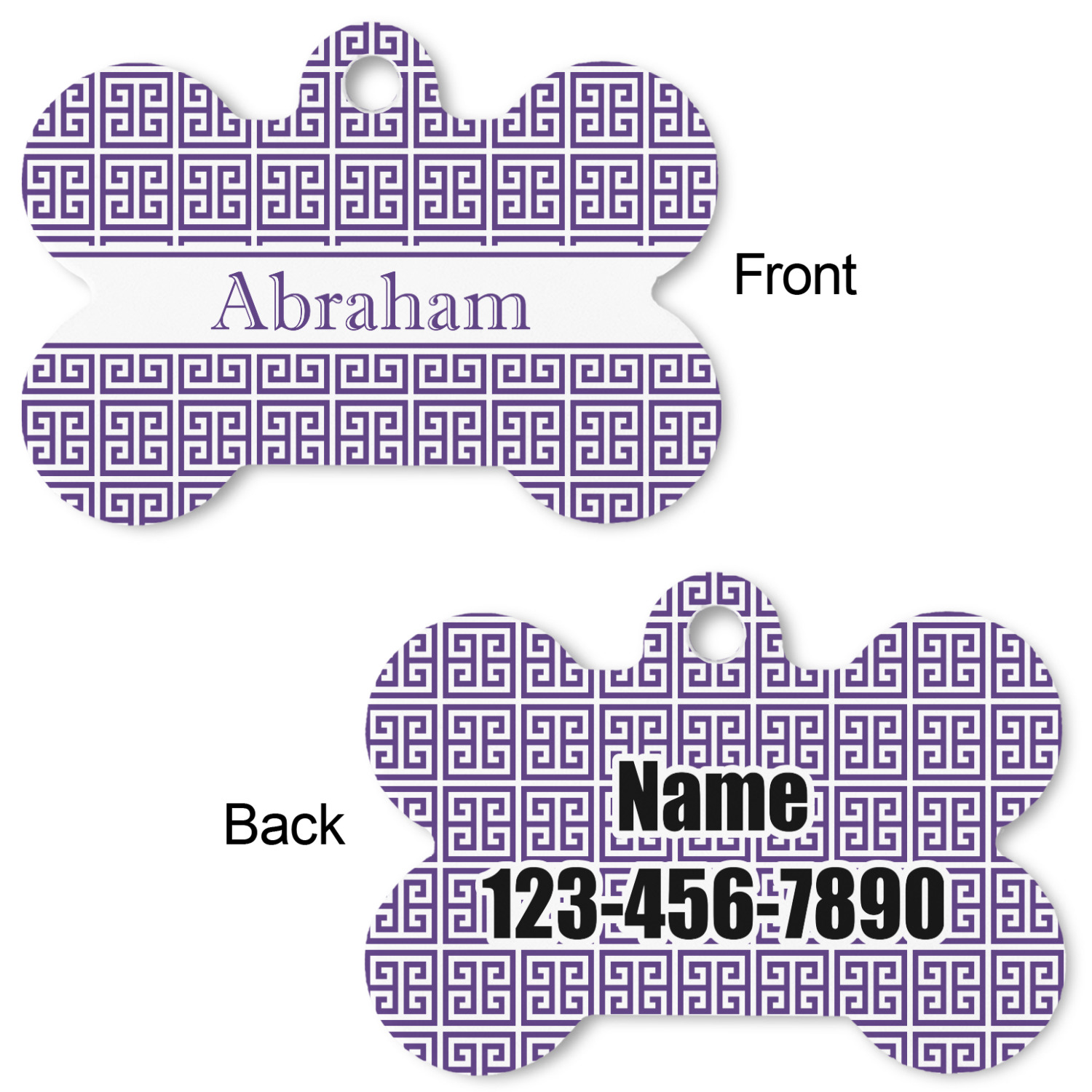 Our default design templates print your dog's personalization on the front and your contact information on the back; however everything is customizable, so you customize the patterns, the colors, the personalization, the contact information etc.