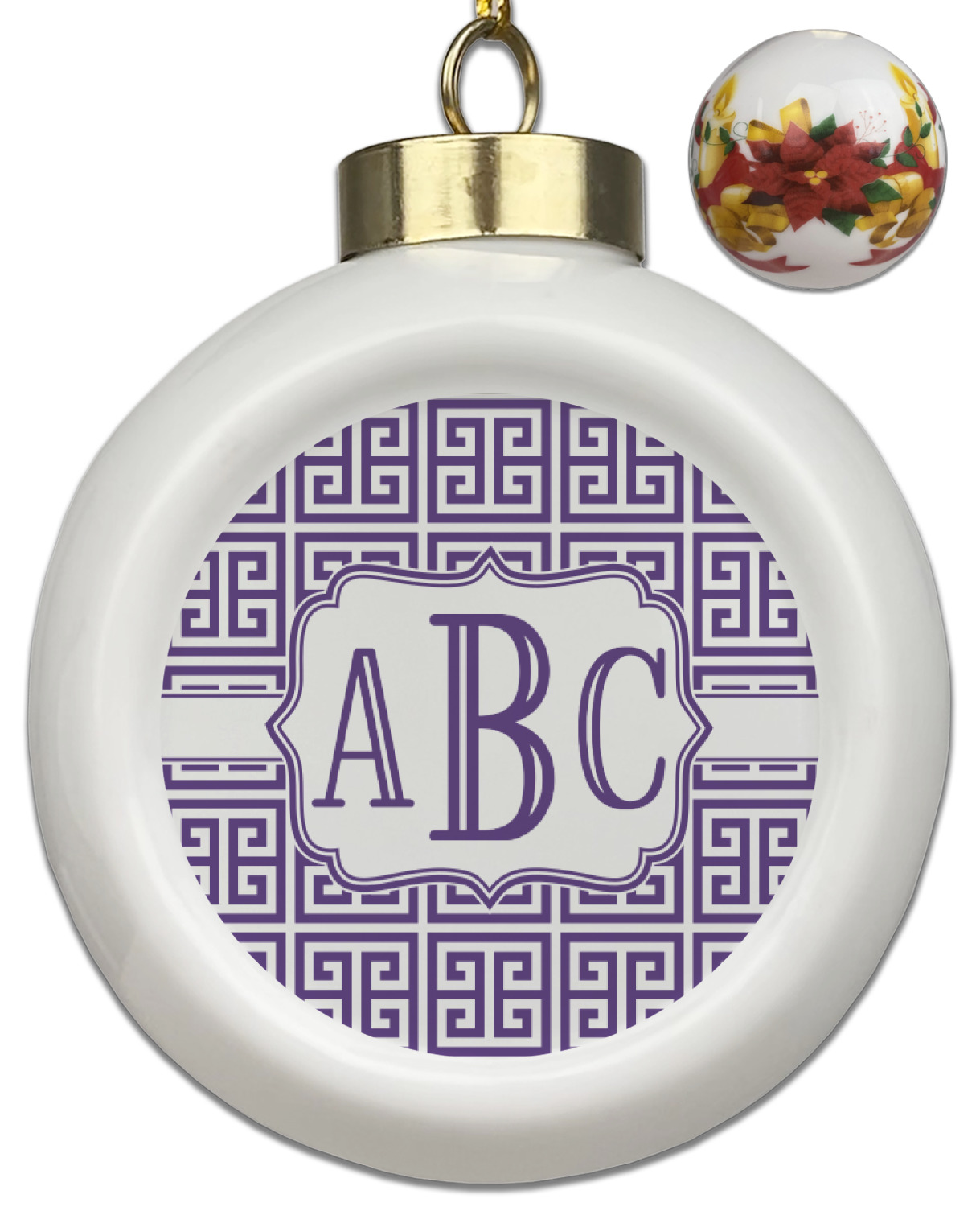 Our Christmas ornaments are a unique ceramic ball shape with a twist as it has a flat face to display your custom design! Select from one of our two design types - Christmas Tree or Poinsettia Garland - to adorn the curved back of your personal design. Each ornament measures 3H x 2.5W x 2D accompanied with a gold string accent for finishing touches to hang on your beautiful Christmas tree!