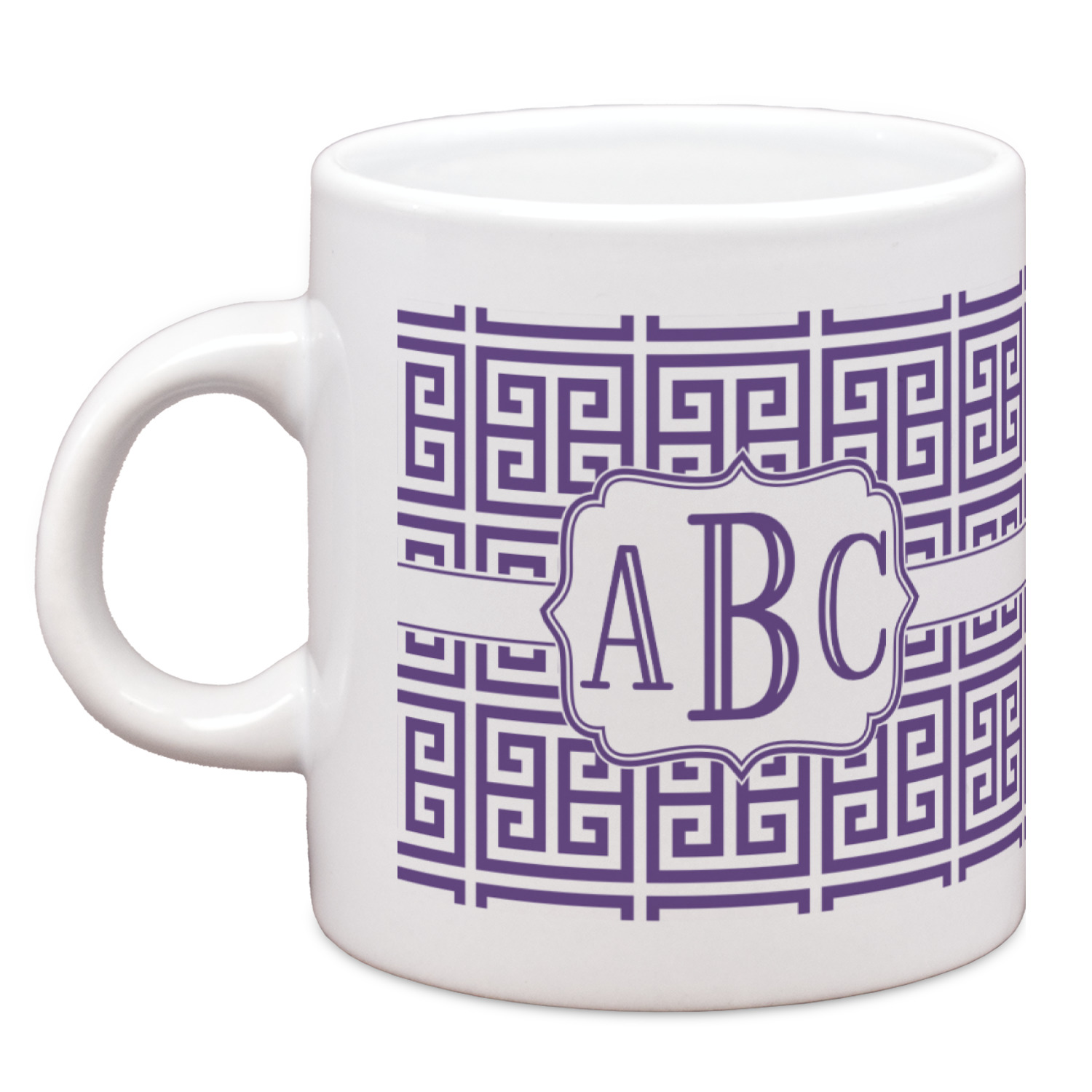 Each of our espresso mugs is a ceramic material sure to keep your drink warm. Personalize one cup for yourself, or order a set of 4! Its the perfect little gift for any coffee lover! We carry two sizes for you to personalize - 3 oz. (approx. 3.25" x 2.325" x 2.625") or 6 oz. (approx. 4" x 2.9" x 2.9"). Our 3 oz. mug is perfect for that single shot espresso while our 6 oz. mug can be your next favorite cappuccino cup holding two shots of espresso!