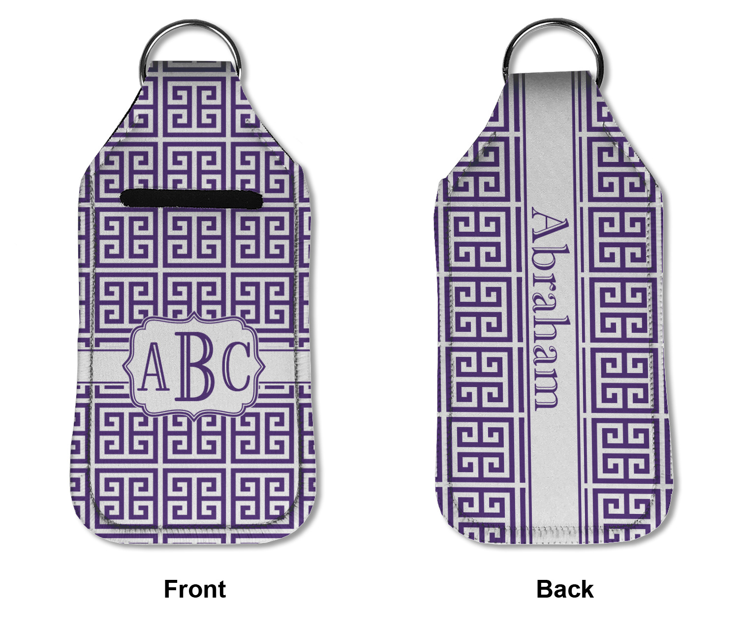 Each hand sanitizer holder comes with its own empty travel-sized, refillable hand sanitizer sure to fit snug in your customized sanitizer case! Our hand sanitizer cases are a durable, yet soft neoprene material sure to last any daily activities or travel agenda. Customize and personalize a hand sanitizer bottle holder with one of our two sizes - small (4.25" x 2.25") or large (5.5" x 2.5"). Each travel sanitizer holder comes with a keyring for attachment on bags, keys, or more!