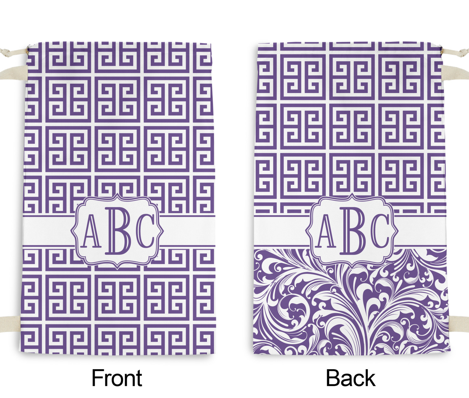 Carry your laundry in style with these customized laundry bags. Available in two sizes, featuring a natural colored woven strap and a cinch cord, these bags hold a lot of clothes or anything else you want to fit in them.
