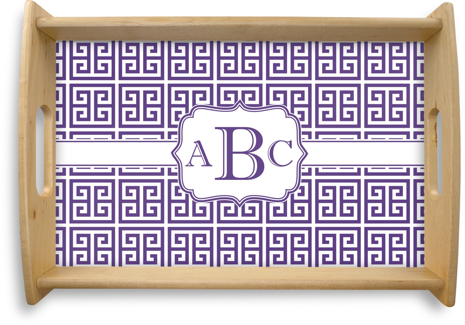 This serving tray with handles features square edges and two rounded sides, creating a very modern look. Each side is fabricated from a beautifully cut, natural wood. The bottom of the interior of the tray displays your customized design in bright, vibrant color. The tray is sold in both a black color and a natural wood look. Each variation of the wood serving tray has two sizes: Small, which is 14" x 10" x 2.25", and Large, which is 19.5" x 13.5" x 2.75".