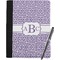 These personalized padfolios are made from a black, polyester microfiber and features a standard, 50-page notepad. However, these black padfolios can accommodate a pad with up to 100 pages. This model also features a slot pocket for any loose sheets of paper, small pockets for business cards, and an elastic band to secure a pen. We print your personalization across the front of this notepad portfolio in bright, vibrant color. These padfolios come in 2 sizes, Medium - approximately 10.25" x 8" for 5" x 8" paper and Large - approximately 12.5" x 8.5" for 8.5" x 11" paper.