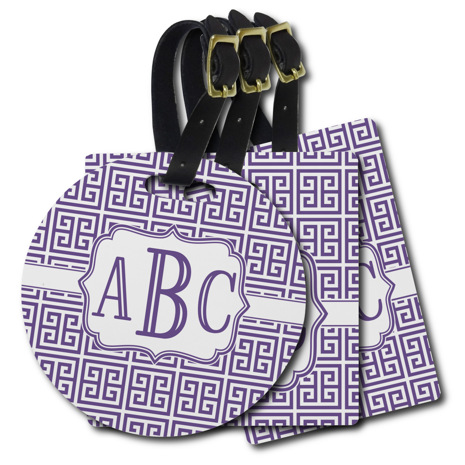 These personalized bag tags are sold in a variety of shapes, so that you may find the product that meets your vision exactly. We sell a round luggage tag, which measures at approximately 4" x 4". Our square luggage tag is about 3.5" x 3.5", while our rectangular version is 2.75" x 4 ".