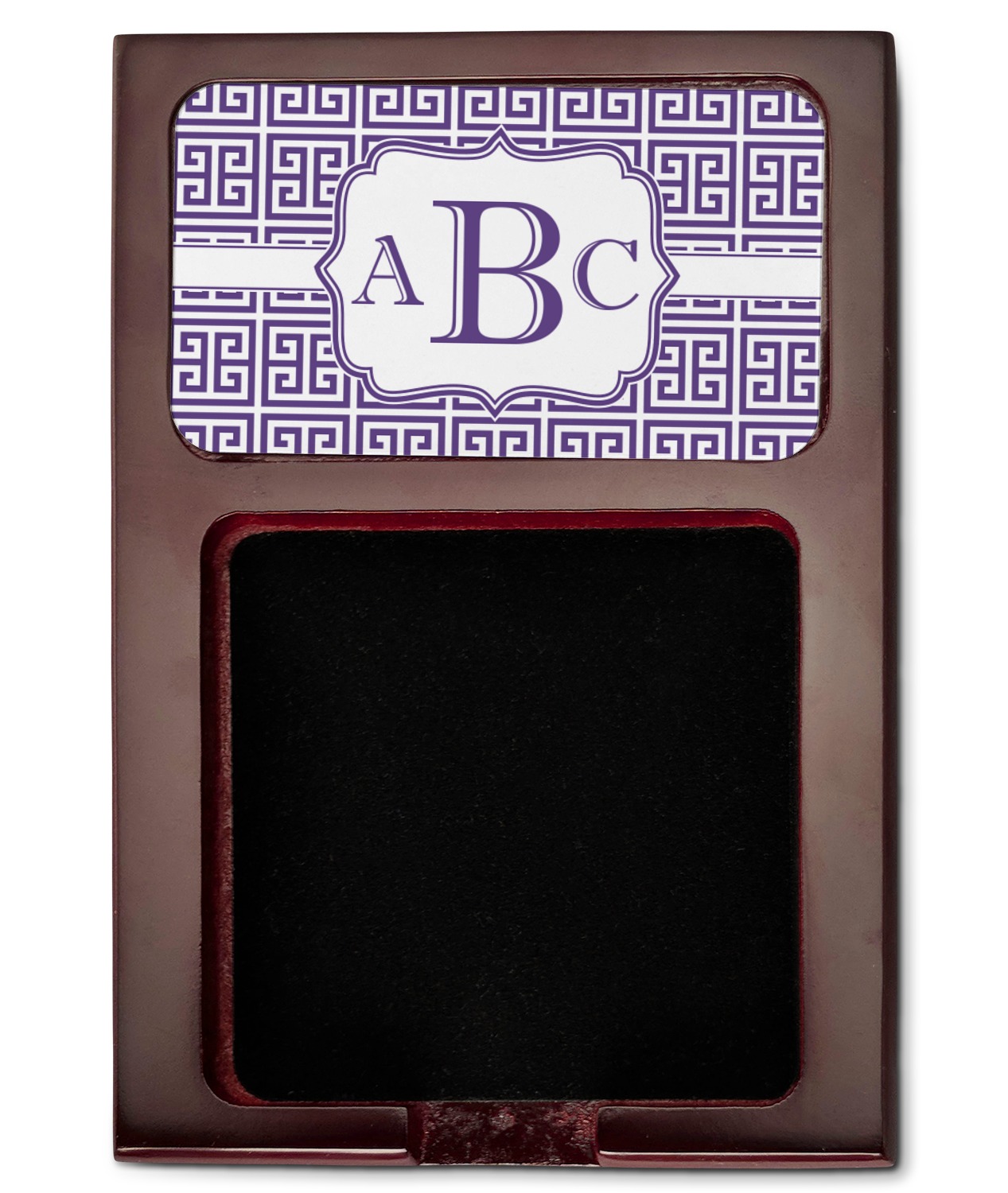 Crafted from a fine mahogany, this post it note holder is in the shade of a dark, cherry color. The dispenser itself is about 4.25 by 6.25 by 0.75 inches. You can place your 3 by 3 inch sticky notes in the indentation below the nameplate. We print your customization onto the nameplate that rests above the velvety indentation.