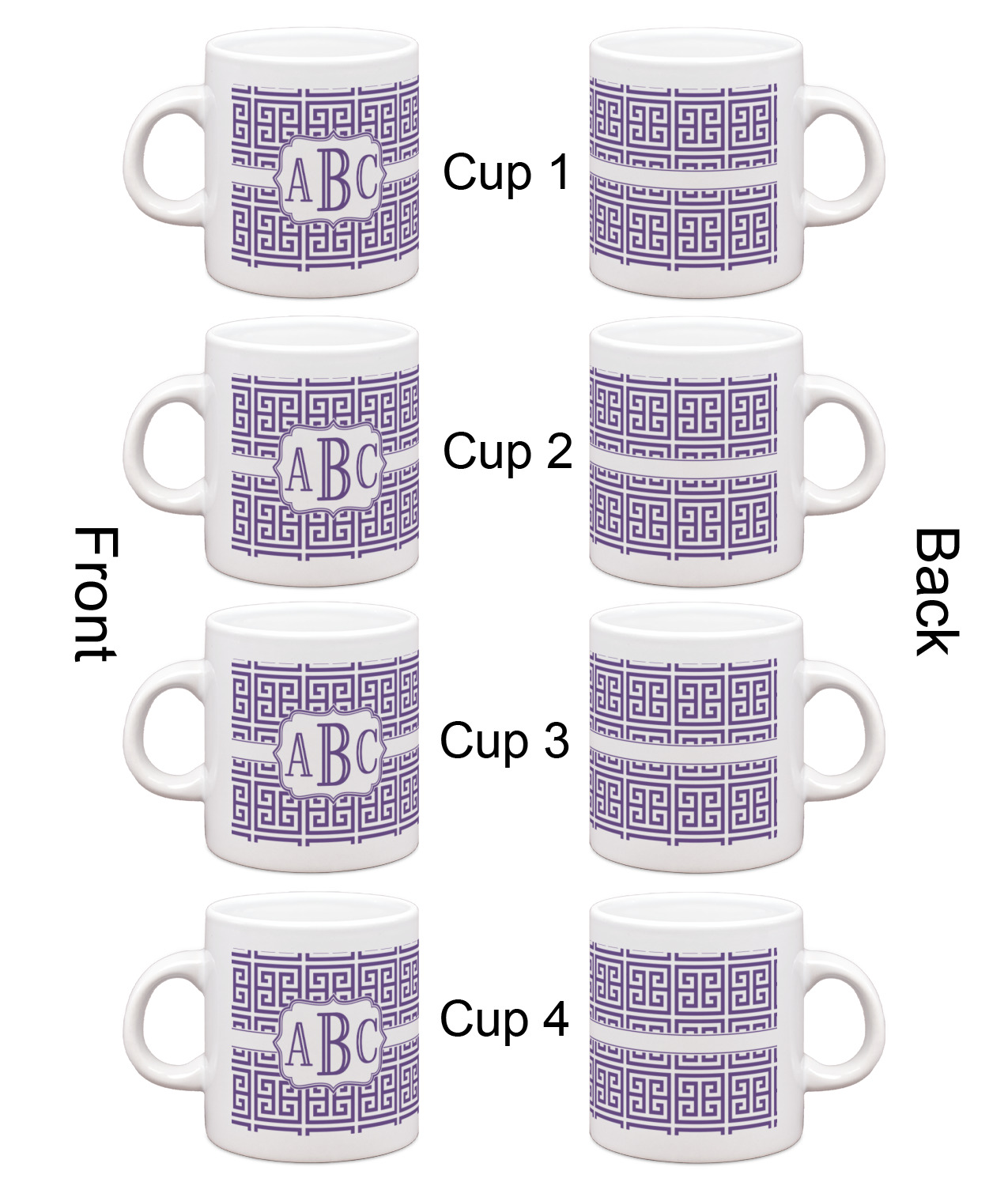 Each of our espresso mugs is a ceramic material sure to keep your drink warm. Personalize one cup for yourself, or order a set of 4! Its the perfect little gift for any coffee lover! We carry two sizes for you to personalize - 3 oz. (approx. 3.25" x 2.325" x 2.625") or 6 oz. (approx. 4" x 2.9" x 2.9"). Our 3 oz. mug is perfect for that single shot espresso while our 6 oz. mug can be your next favorite cappuccino cup holding two shots of espresso!