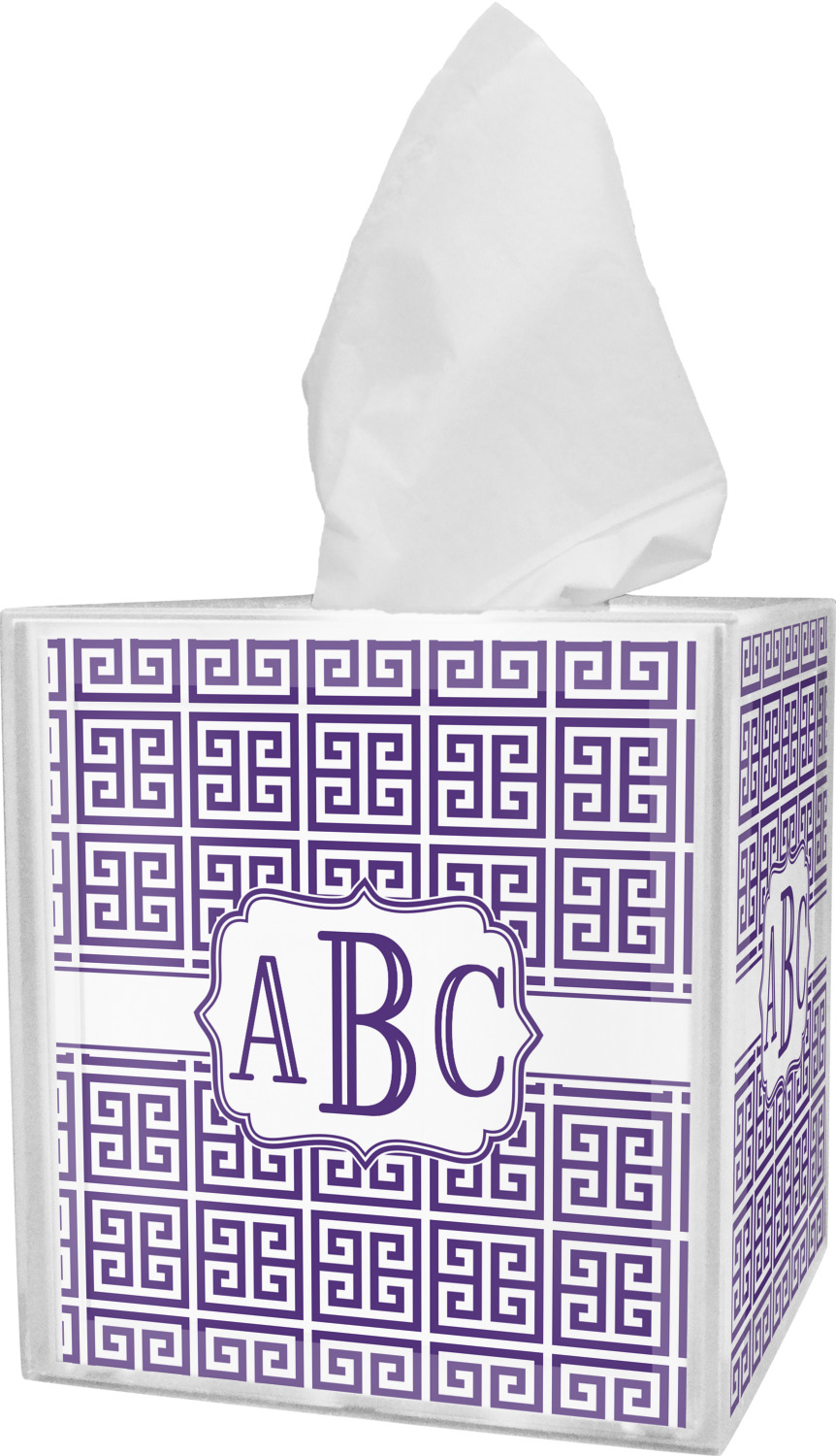 These tissue holders are built from durable acrylic and display your unique personalization on fine-quality vinyl inserts placed within the four sides and top. The box features two pieces, allowing you to easily switch out tissue boxes. On the sides, youll find ridges that ensure the top and base fit securely in place. The bottom of these tissue box holders has four, rubber, non-slip pads to prevent the box from scuffing any surface you decide to display it on. Each box can fit a standard 5 by 5-inch box of tissues.