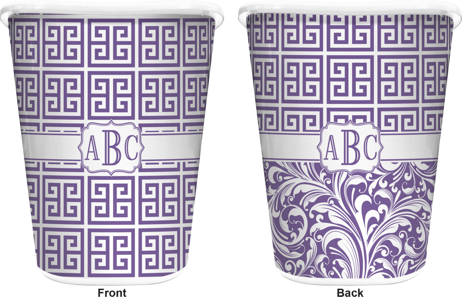 You can choose to purchase these decorative wastebaskets in either a white or a black color that will show on the base and the upper rim. Your customization is printed on a high-gloss, fine-quality vinyl adhesive, and you can choose to either have this adhesive applied to one side only or to both sides. As such, this plastic wastebasket can be single-sided or double-sided, depending on your creative vision. Your customization is printed using durable inks, making the design waterproof and resistant to fading over time.