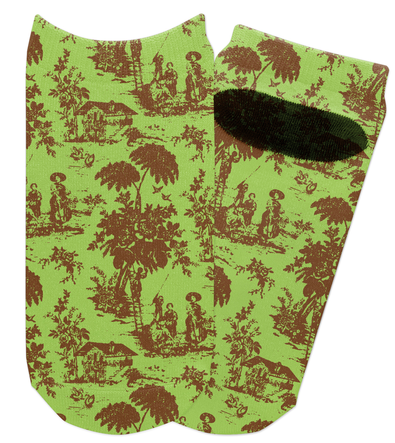 Old world toile just got dressed up. Toile has been around forever but we have taken a centuries old design and brought it to the present and beyond. We took the traditional toile design and modernized it by using brown and green. The toile pattern is created in brown which pops on a backdrop of green.