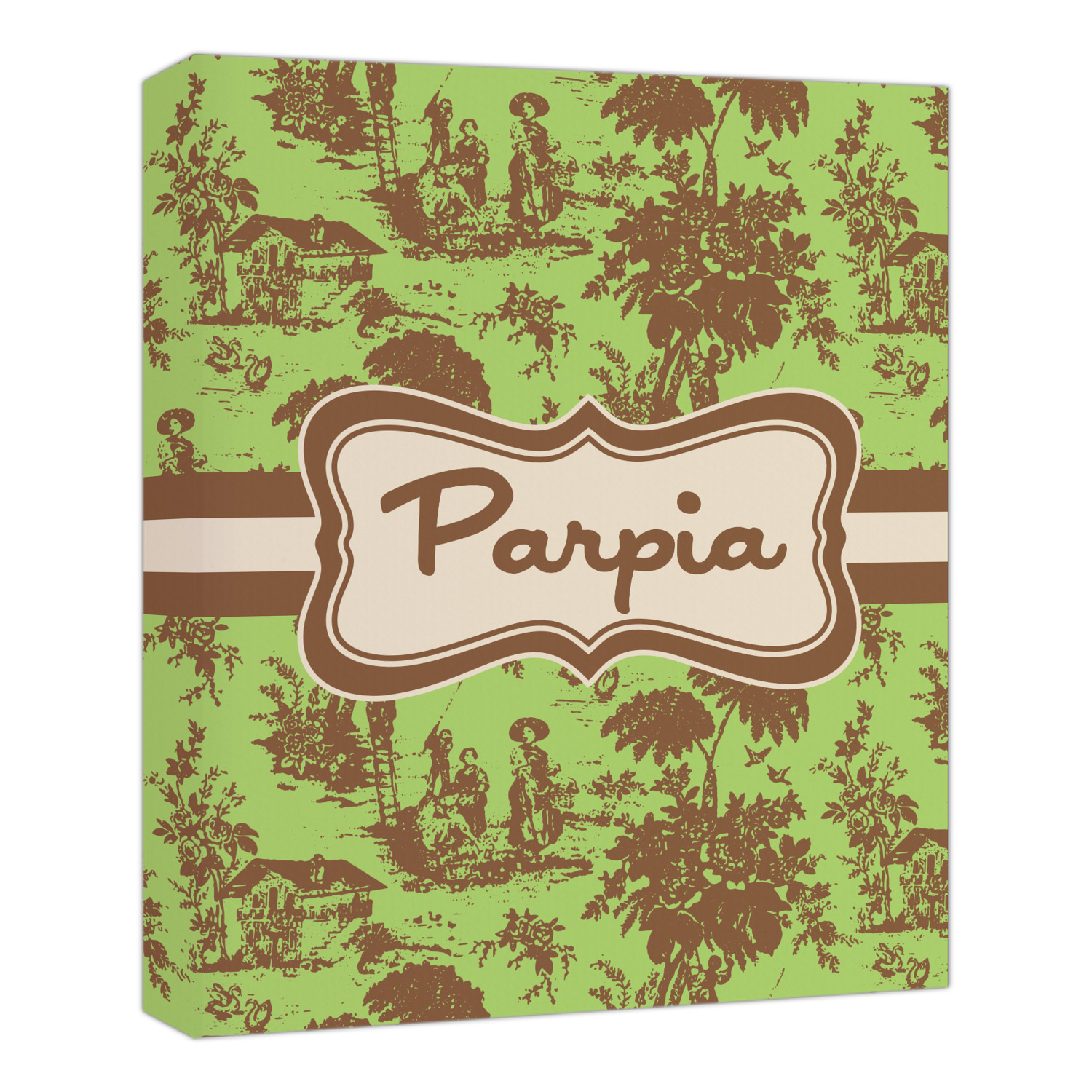 Old world toile just got dressed up. Toile has been around forever but we have taken a centuries old design and brought it to the present and beyond. We took the traditional toile design and modernized it by using brown and green. The toile pattern is created in brown which pops on a backdrop of green.