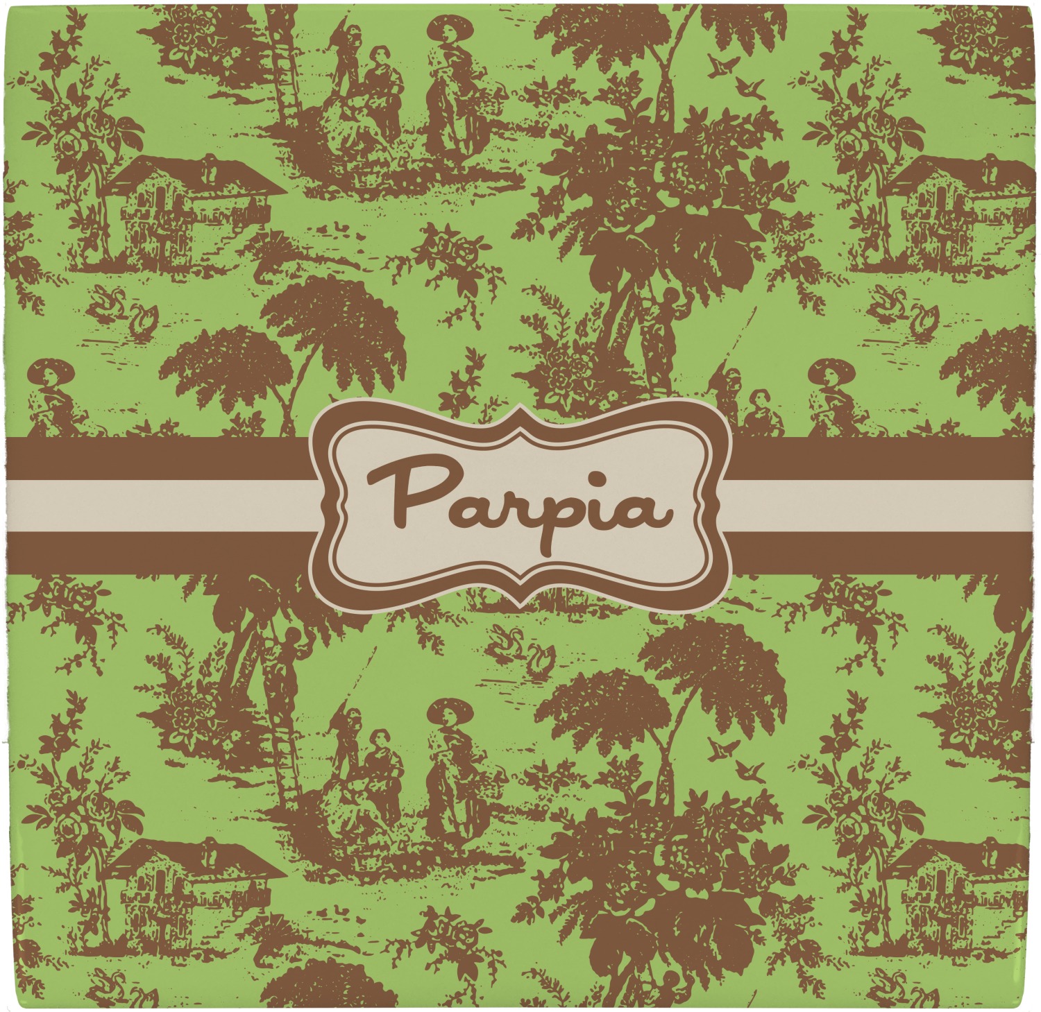 Old world toile just got dressed up. Toile has been around forever but we have taken a centuries old design and brought it to the present and beyond. We took the traditional toile design and modernized it by using brown and green. The toile pattern is created in brown which pops on a backdrop of green.