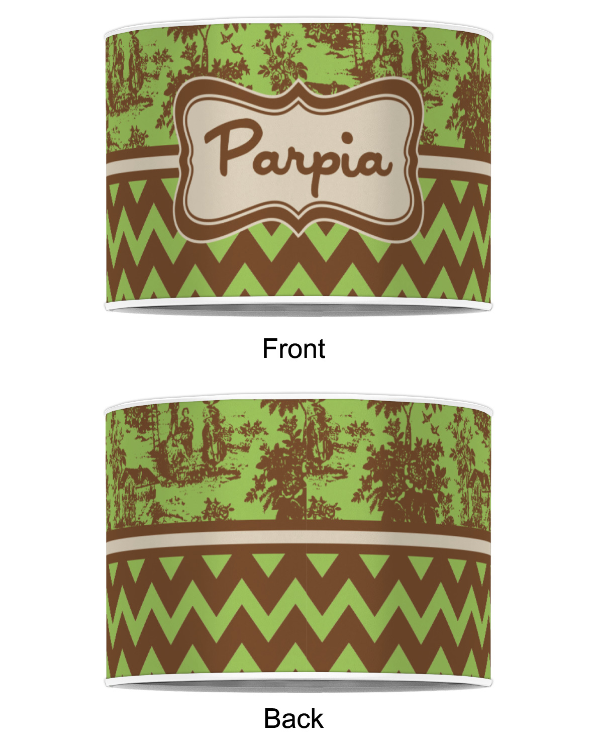 Old world toile just got dressed up. Toile has been around forever but we have taken a centuries old design and brought it to the present and beyond. We took the traditional toile design and modernized it by using brown and green. The toile pattern on top is created in brown which pops on a backdrop of green. On the bottom we have used the very modern chevron pattern in the same green and brown.