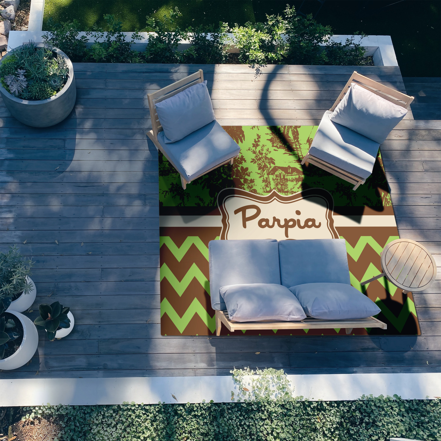 Patio rugs add color and warmth to your home's outdoor space, so create a custom patio rug to suit your personal style and match it to the colors of your outdoor décor. Have it personalized with a monogram, initial, name or a combination of these - the choice is yours.