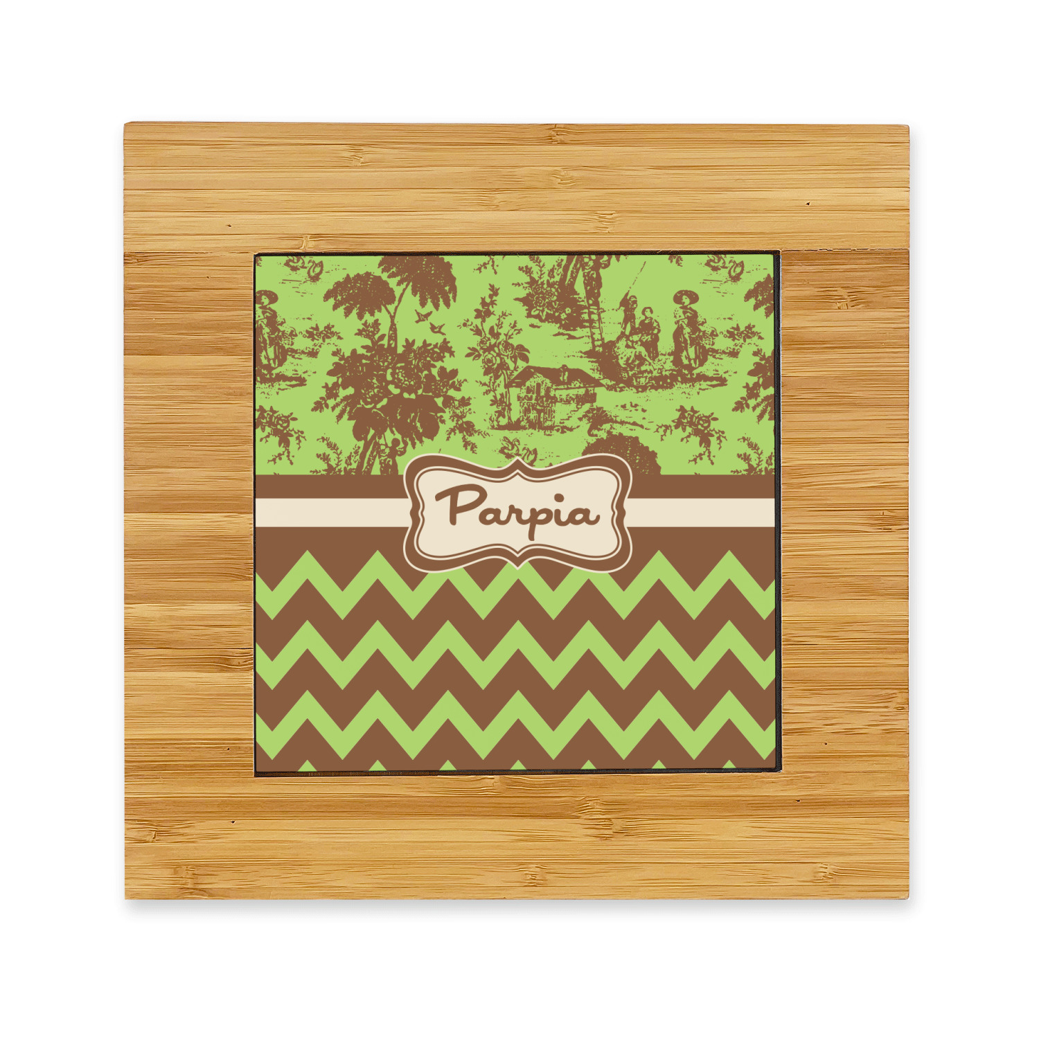 The center is highlighted by a 6in ceramic tile that is printed with the design of your choice. The tile sits slightly higher than the bamboo to ensure the majority of the heat stays on the tile not on the bamboo.