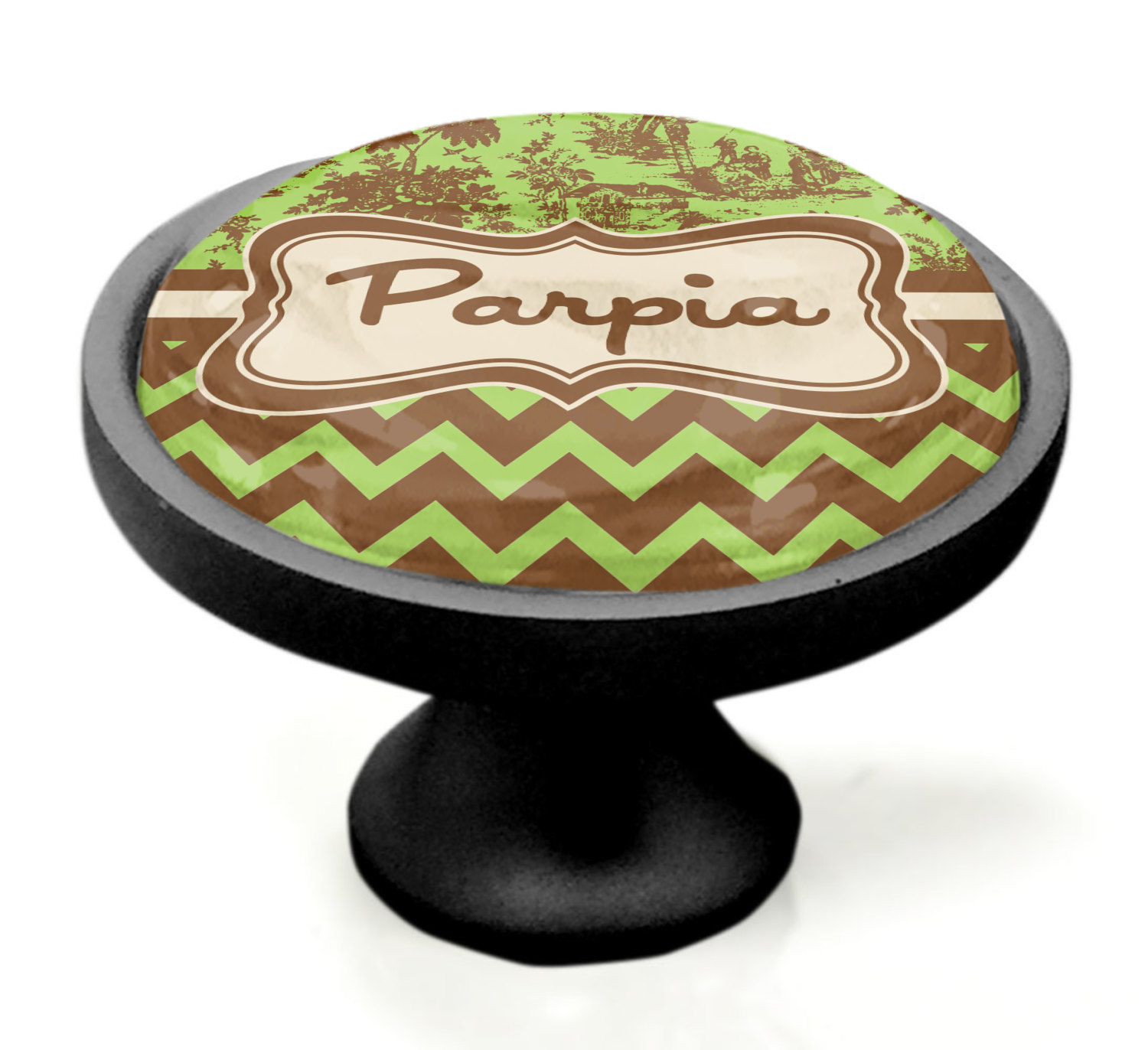 We sell these cabinet pulls in two different colors to better match your room's color scheme. We offer an oil-rubbed bronze base that is black in color, and a satin nickel option, which has a silver color. Your design is displayed across a high gloss vinyl insert that is placed on top of these cabinet handles. We then place a 1 inch thick glass cabochon atop the design, which seals the cabinet knob and makes the colors of your customization stand out. These custom cabinet knobs are approximately 1.3 inches in diameter. Your purchase includes a 1 inch screw that can be used to mount the knob to any cabinet in your home.