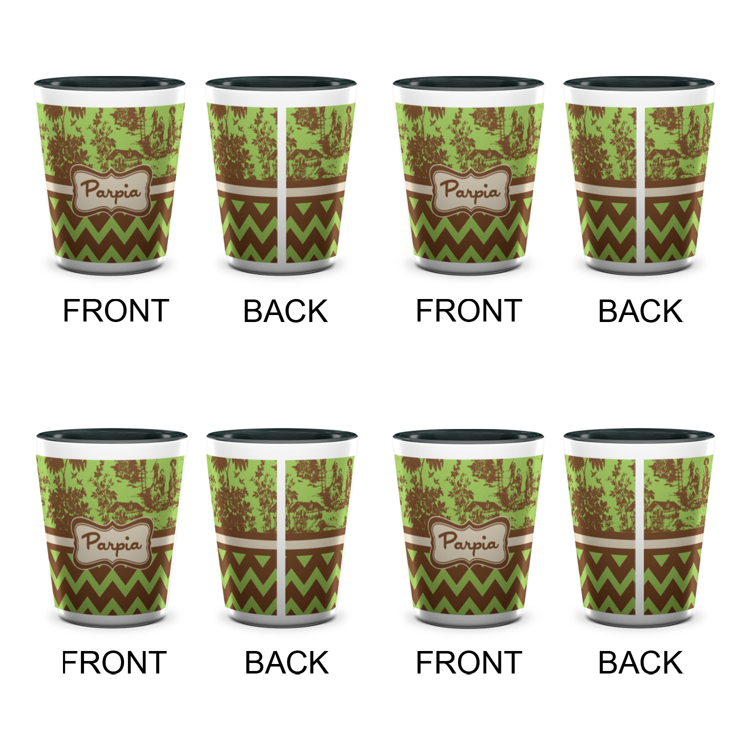 Made from ceramic these shot glasses are printed in full color with the design of your choice. These are a standard 1.5oz size and stand 2.25" tall. Available in a full white ceramic or a two-tone with a black color inside the shot glass. Buy a single or a set of 4, all of which can be designed separately to get you just what you want and need.