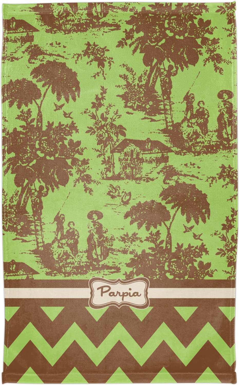 | SKU | mi-fp-towel-s+fingertip-Green-Brown-Toile-Chevron |