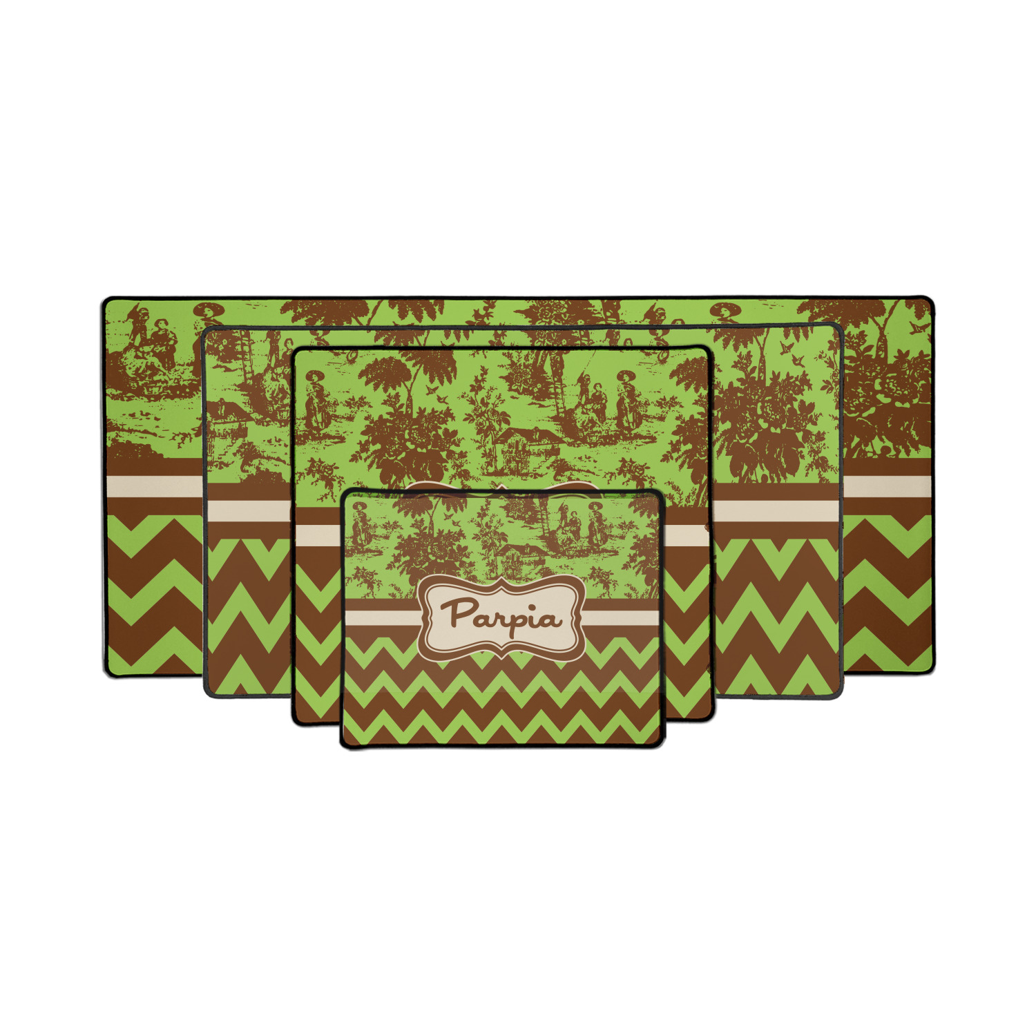 Old world toile just got dressed up. Toile has been around forever but we have taken a centuries old design and brought it to the present and beyond. We took the traditional toile design and modernized it by using brown and green. The toile pattern on top is created in brown which pops on a backdrop of green. On the bottom we have used the very modern chevron pattern in the same green and brown.