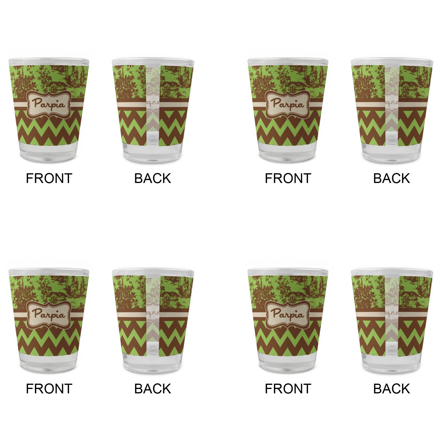 Made with frosted glass, these shot glasses are printed in full color with the design of your choice. They are a standard 1.5oz shot glass and are 2.4" tall. The print is wrapped around the shot glass in a full wrap and boldly displays your customization.