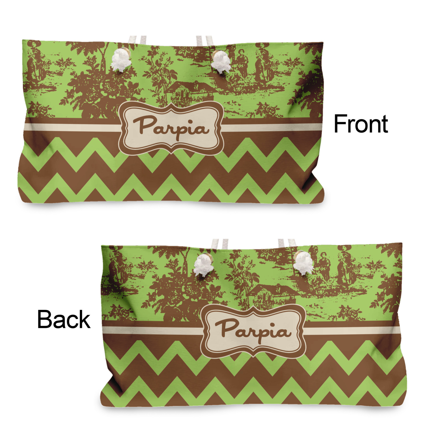 These weekender totes can be customized front and back. The totes are full all over print - so the choice of how background are endless - from beautiful floral or leaf patterns to geometrics or some classic Van Gogh artwork - the possibilities are endless. The totes can also be decorated with photos and logos.