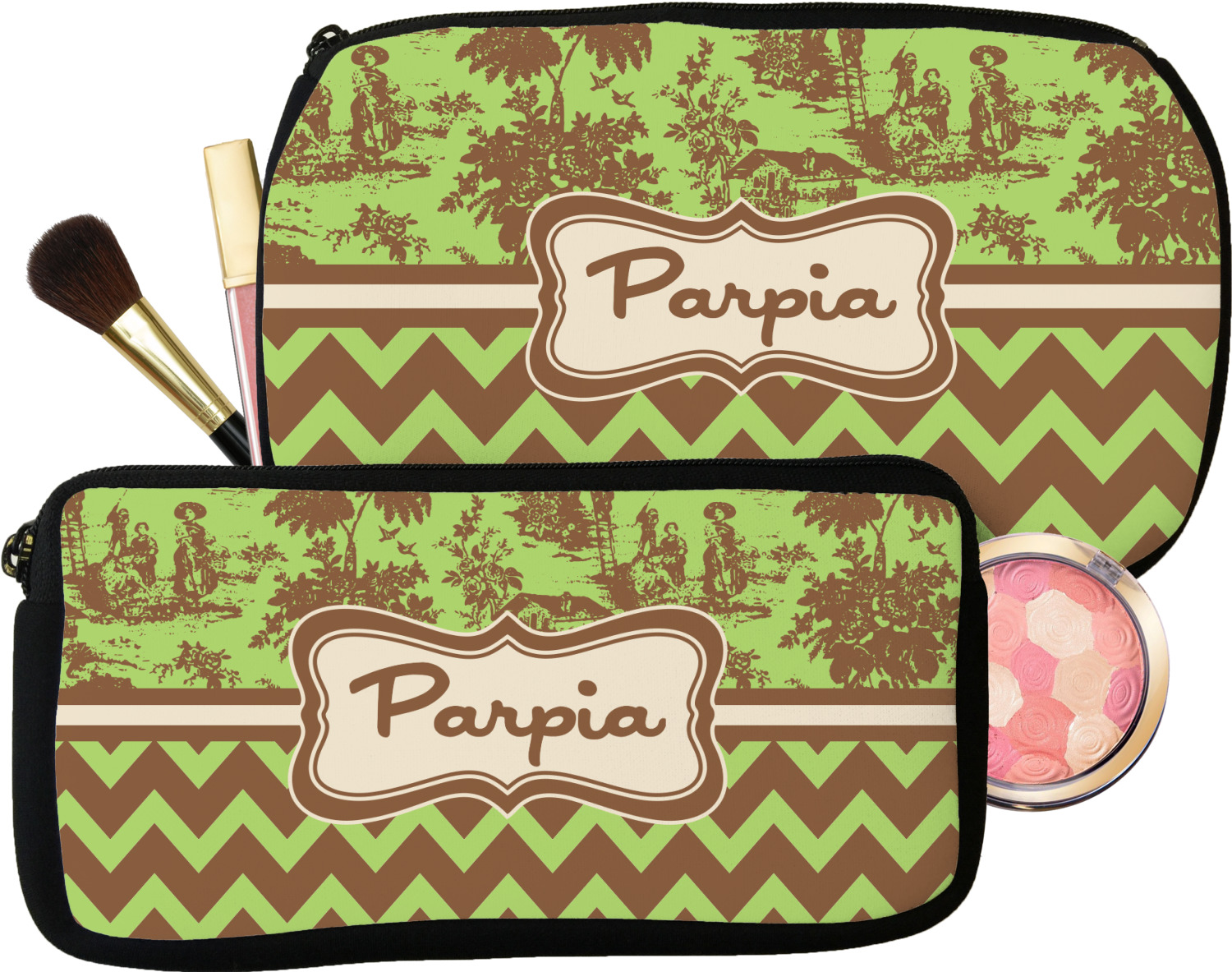 Every girl and woman carries makeup and cosmetics in her purse. Why not carry your makeup in these beautiful custom made and personalized makeup bags. These cosmetic bags also make a great bridesmaid gift.