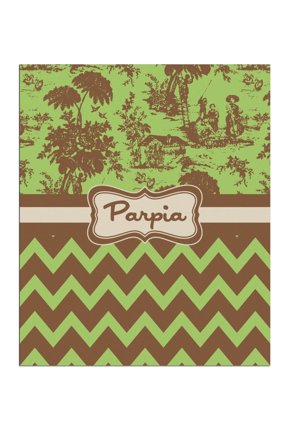Old world toile just got dressed up. Toile has been around forever but we have taken a centuries old design and brought it to the present and beyond. We took the traditional toile design and modernized it by using brown and green. The toile pattern on top is created in brown which pops on a backdrop of green. On the bottom we have used the very modern chevron pattern in the same green and brown.