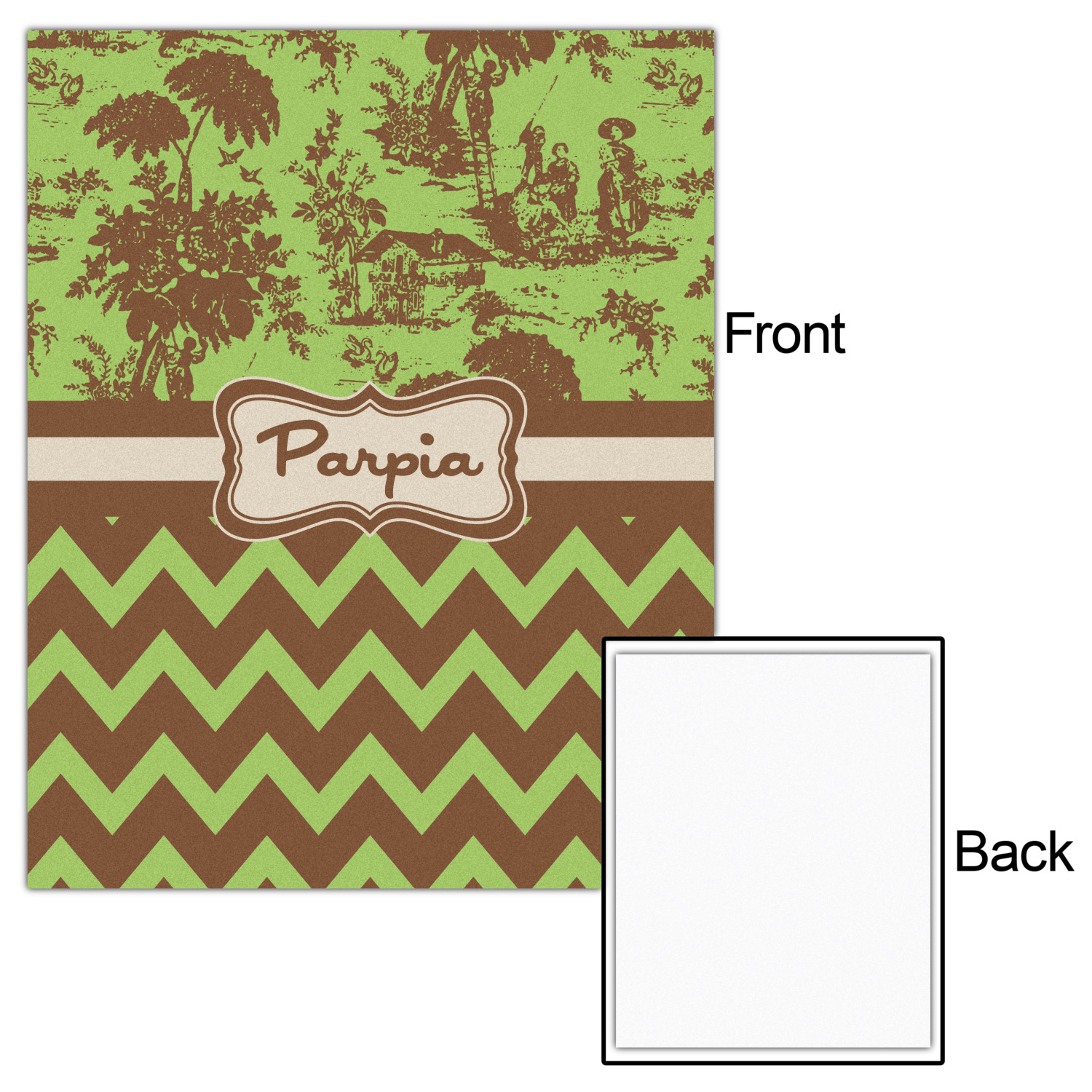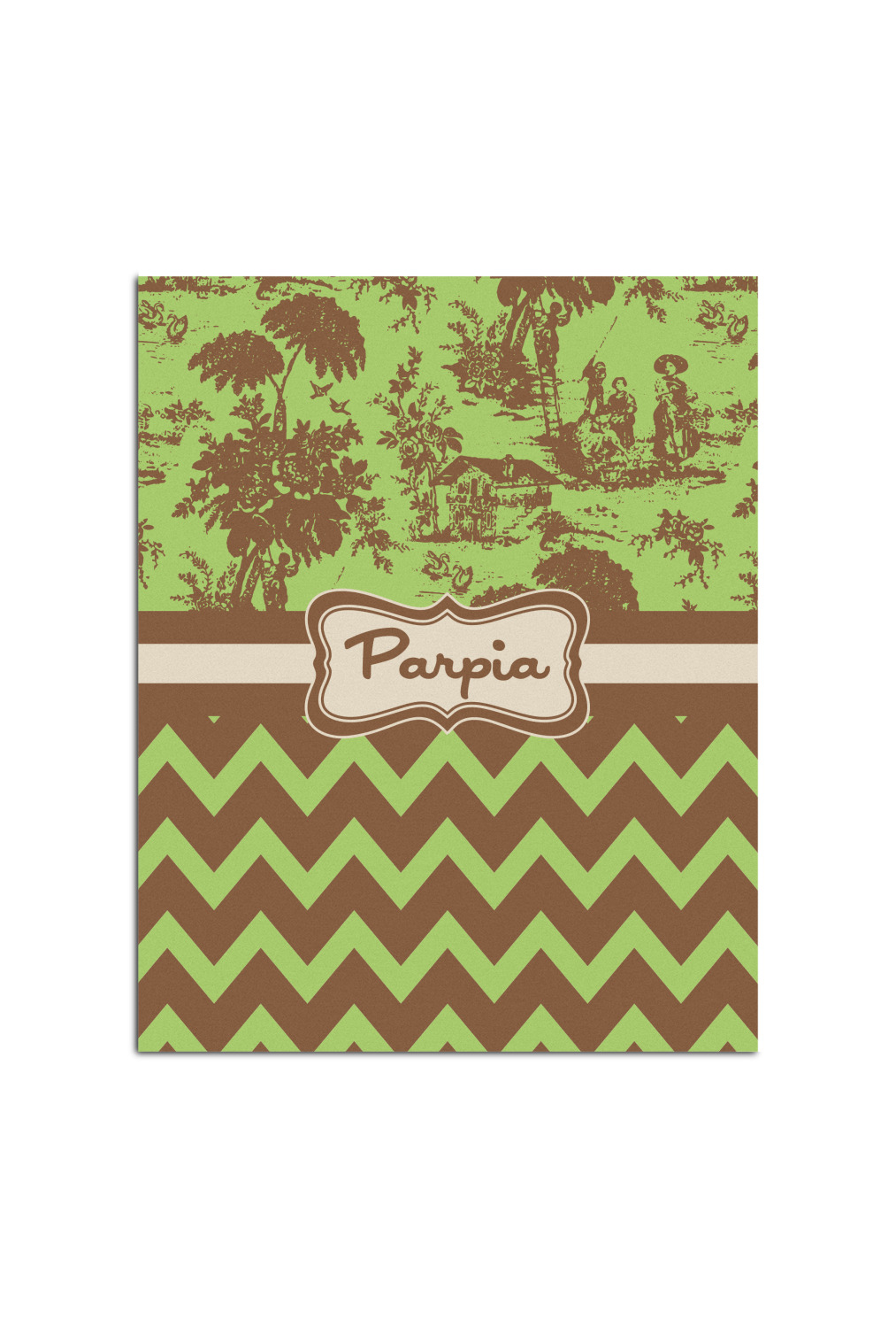 Old world toile just got dressed up. Toile has been around forever but we have taken a centuries old design and brought it to the present and beyond. We took the traditional toile design and modernized it by using brown and green. The toile pattern on top is created in brown which pops on a backdrop of green. On the bottom we have used the very modern chevron pattern in the same green and brown.
