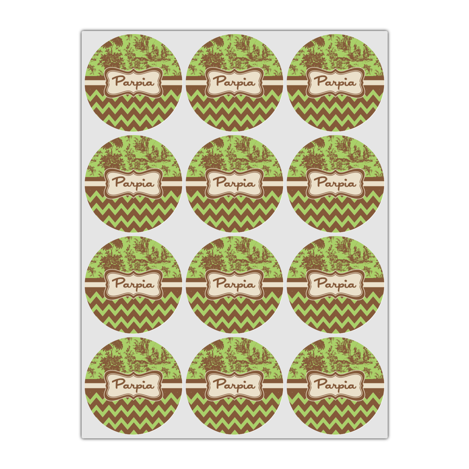 Old world toile just got dressed up. Toile has been around forever but we have taken a centuries old design and brought it to the present and beyond. We took the traditional toile design and modernized it by using brown and green. The toile pattern on top is created in brown which pops on a backdrop of green. On the bottom we have used the very modern chevron pattern in the same green and brown.