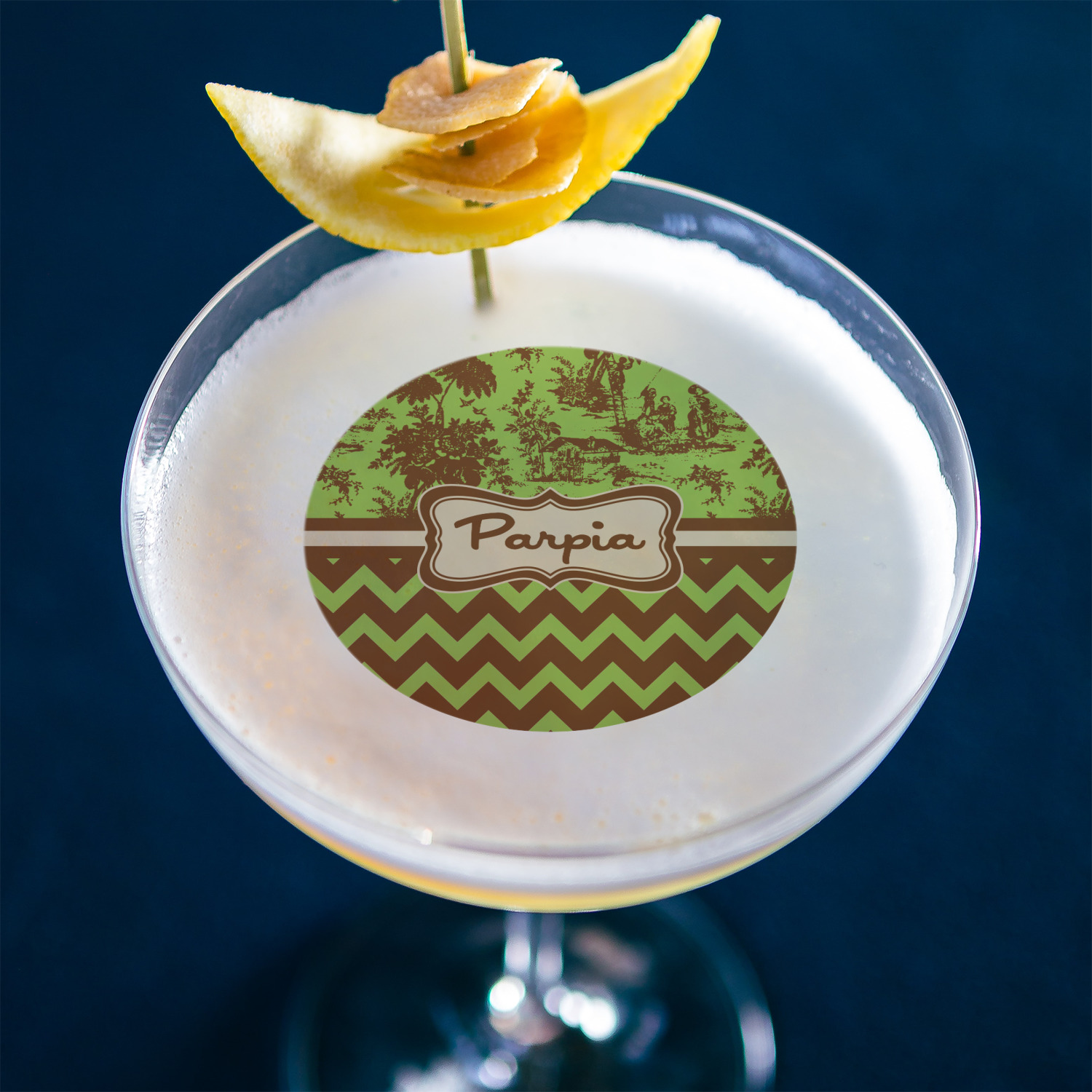 Our drink toppers are printed in full color with FDA approved edible inks. The cocktail toppers are printed on premium wafer thin icing sheets (not wafer paper) and then cut into circles.