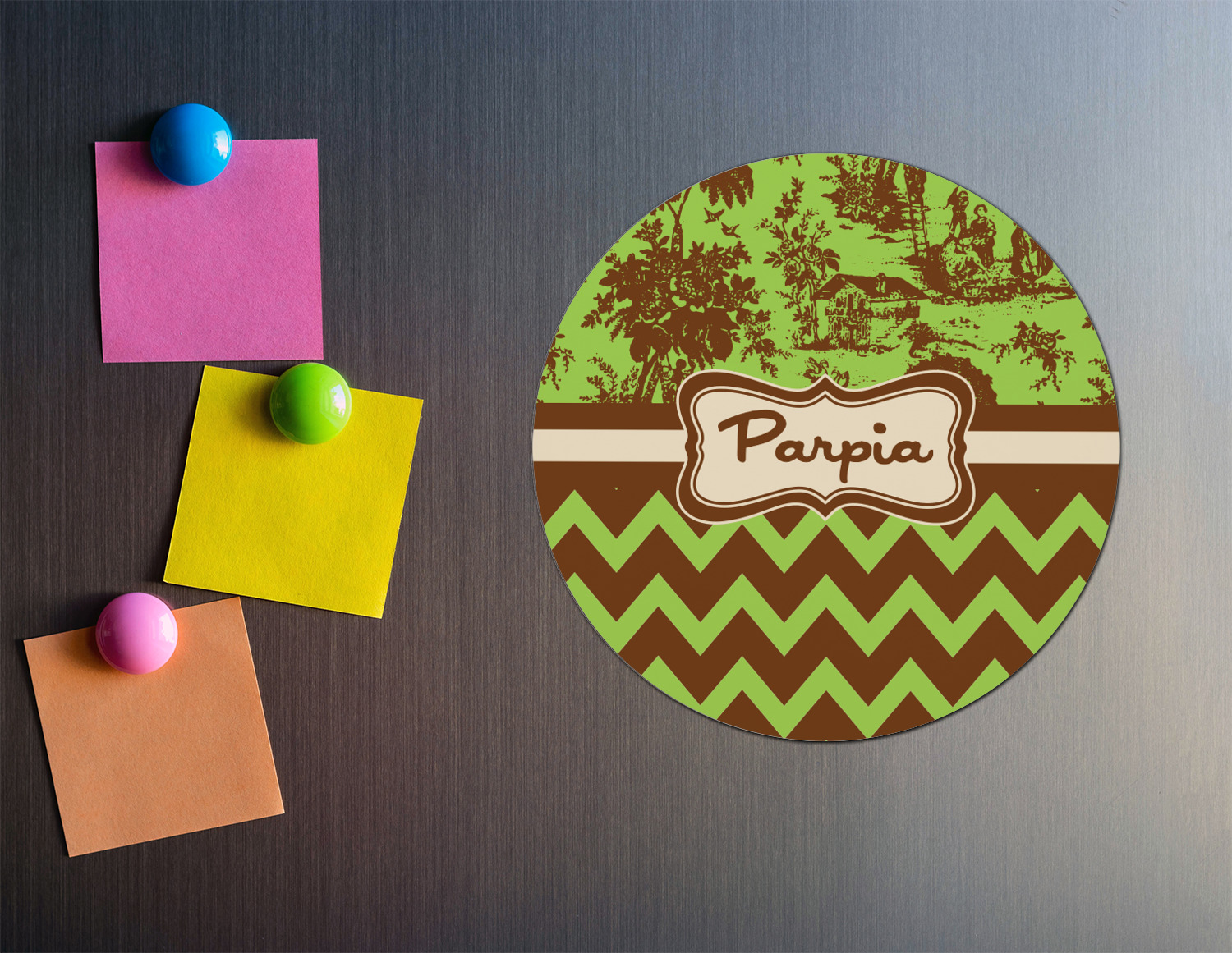 | SKU | mi-round-magnet+Green-Brown-Toile-Chevron |