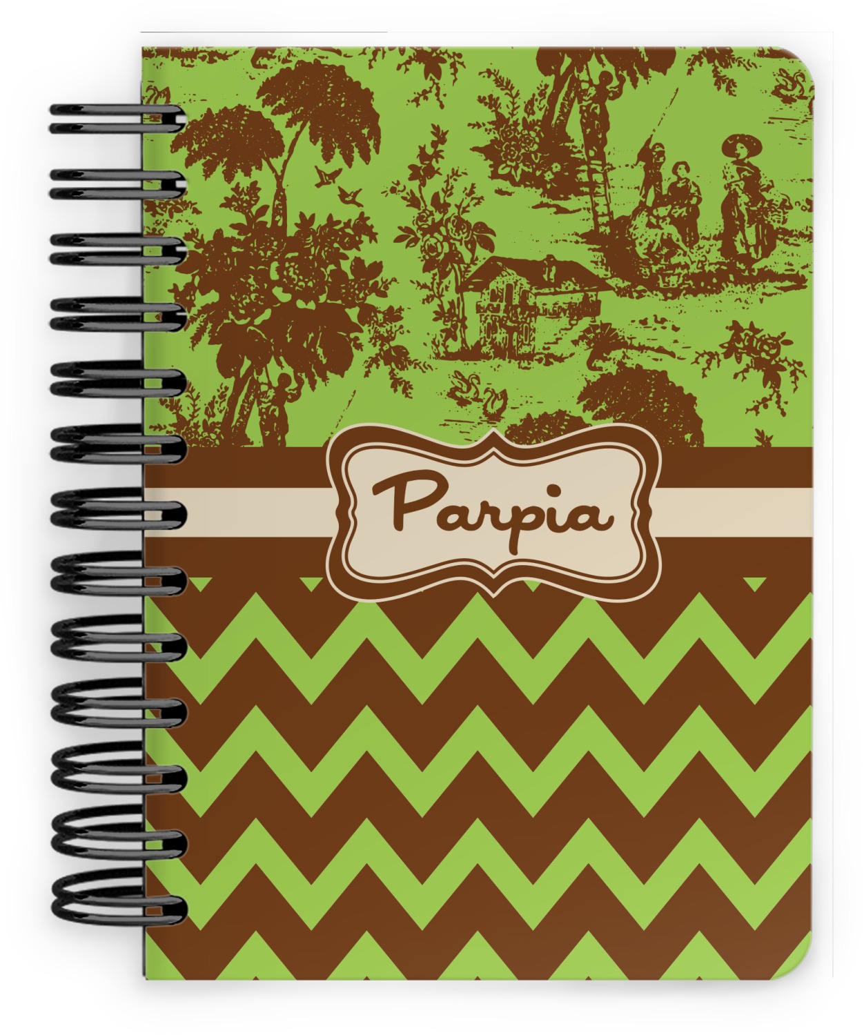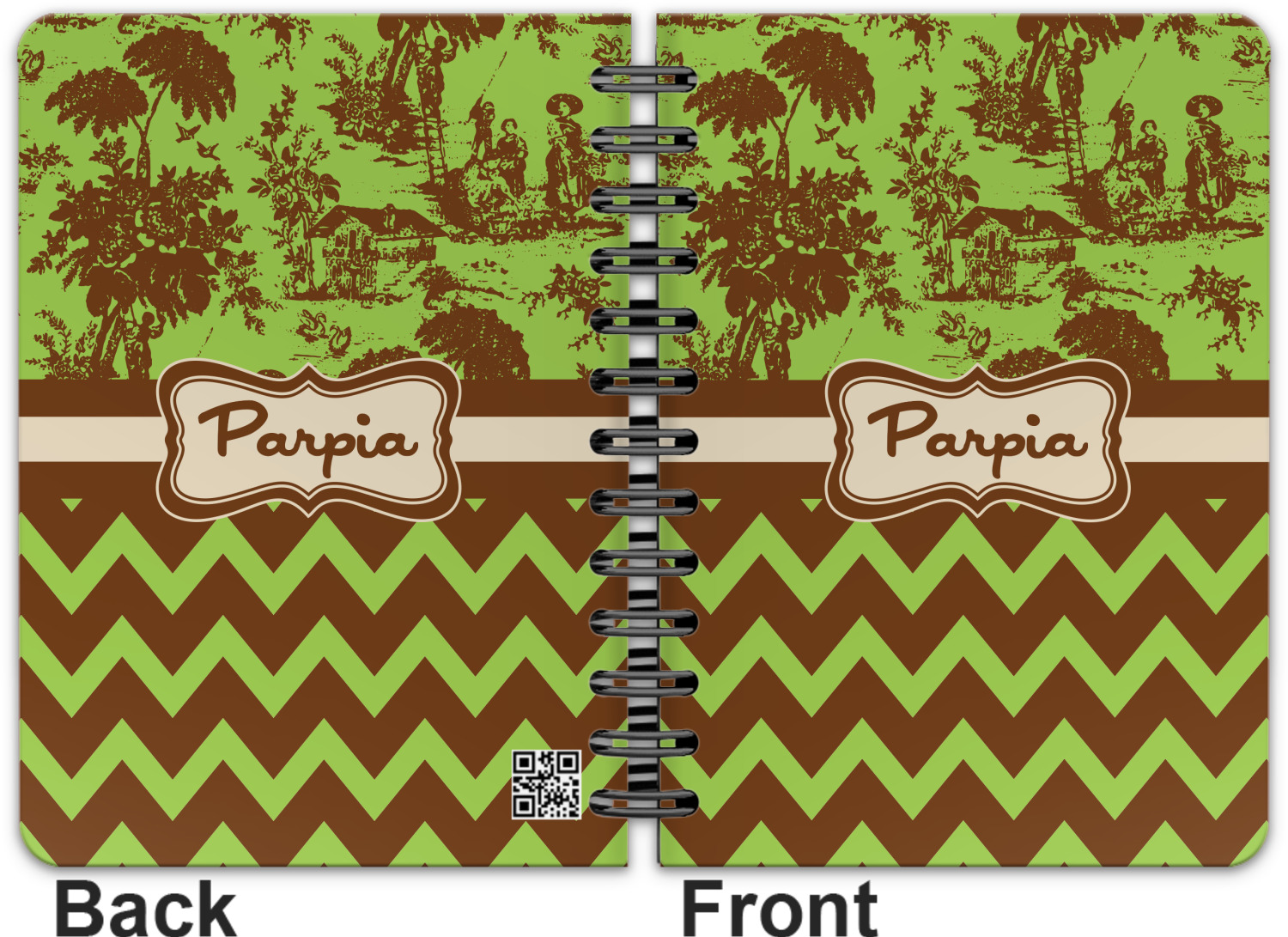 This spiral notebook includes 75 sheets of thick, ruled paper. The front and back of this custom notebook is made of a robust, laminate, plastic covering. We print your personalization on these two panels, underneath a glossy finish, which emphasizes the colors of your design. The two panels and the sheets of paper are held together by a sturdy, black coil. The paper within your bound notebook is perforated for easy, clean tearing.